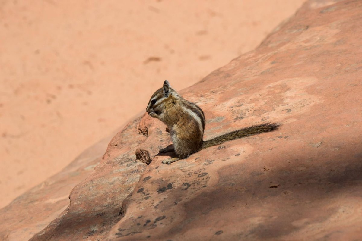 Ráno bereme všechny věci s sebou a pokračujeme dál do městečka Springdale, které je vstupní branou do národního parku Zion. Musím přiznat, že na tento park jsem se těšil snad nejvíc. Auto necháváme zaparkované na okraji parku a dále pokračujeme autobusem s místními důchodci, kterým se nelíbí, že se hlasitě bavíme a rušíme je, když se z reproduktorů ozývá přednáška o tom, proč jsou vlastně okolní skály červené. Přijíždíme k místu, odkud startuje jeden z nejlepších trailů světa: výstup na Angels Landing. Tento výstup není až tak fyzicky náročný, převýšení jen asi 400 metrů. Náročný je spíš psychicky, protože zejména v druhé polovině to řada lidí při pohledu dolů raději vzdá. Nakonec dorazíme na vrchol s úspěšností 75% a kocháme se překrásným výhledem do zbytku parku. Jedna malá vsuvka ohledně Angels Landing, podle zpráv z roku 2018 je tento trail zavřený, protože část trasy byla poničena při povodních, nyní opět otevřeno, ale je dobré si informace vždy ověřit na oficiálních stránkách daného parku - viz odkaz v posledním odstavci. Po sestupu dolů už nám nezbývá moc času, tak se podíváme alespoň k Emerald Pools, nicméně zajímavější by mohla být procházka úzkým korytem řeky (Narrows), které tvoří hluboký kaňon, nebo třeba "Canyon Overlook Trail", který omylem vynecháváme...