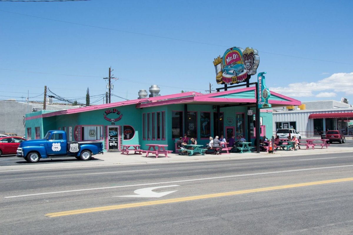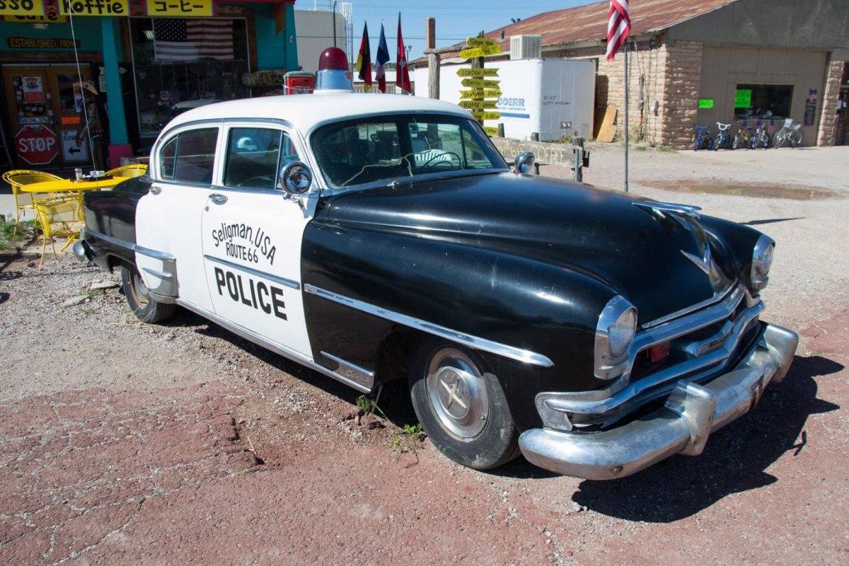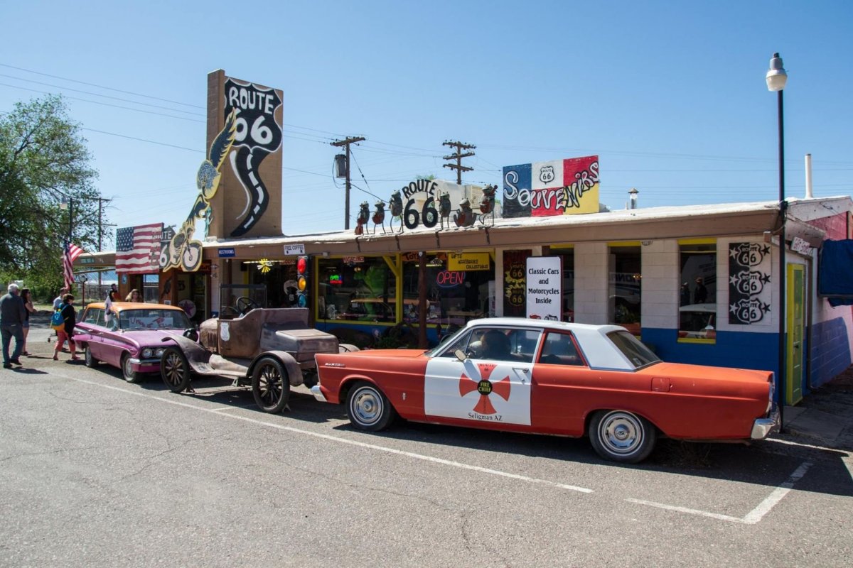 Následují den začínáme na dálnici Interstate 40, která nahradila slavnou silnici Route 66 pro běžný provoz. Některé úseky slavné Route 66 však zůstaly zachovány. Zastavujeme tedy ve městečku Seligman, které je jakousi vstupní branou na nejznámější úsek historické silnice. Je tady pár obchodů s tématickými suvenýry, překvapivě dost českých vlajek, také motocykl značky Jawa a také auta z filmu Auta. Projíždíme úsek Seligman - Kingman a právě ve městě Kingman zastavujeme a navštěvujeme muzeum věnované právě zmiňované silnici. Rozhodně stojí za návštěvu, pokud se aspoň trochu zajímáte o historii. Oběd si tentokrát dáváme v restauraci Mr D'z Route 66 Diner. Jak jinak než burger s hranolkami a root beer. Protože další úsek historické Route 66 je aktuálně uzavřený, do cíle cesty pro dnešní den, tedy městečka Needles, jedeme opět po novodobé dálnici. V Needles nás čeká poměrně levné ubytování (River Valley Inn), máme dokonce bazén a venku je opravdu horko. Není divu, po dlouhé době se opět dostáváme do nízké nadmořské výšky. Jinak je Needles opravdu zapadákov, zastavujeme tu jen proto, abychom si rozdělili dlouhou cestu.
