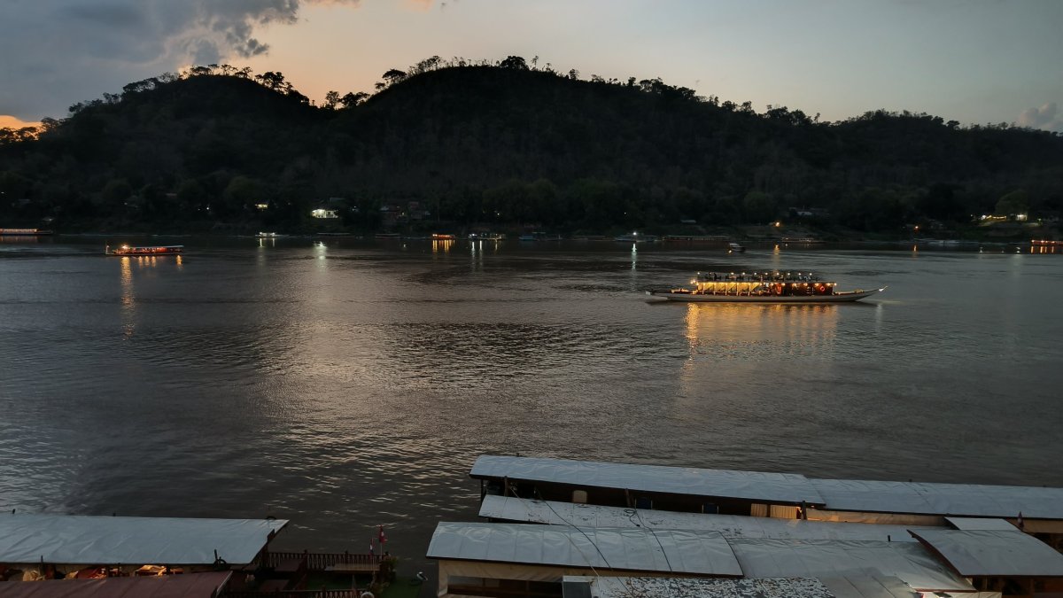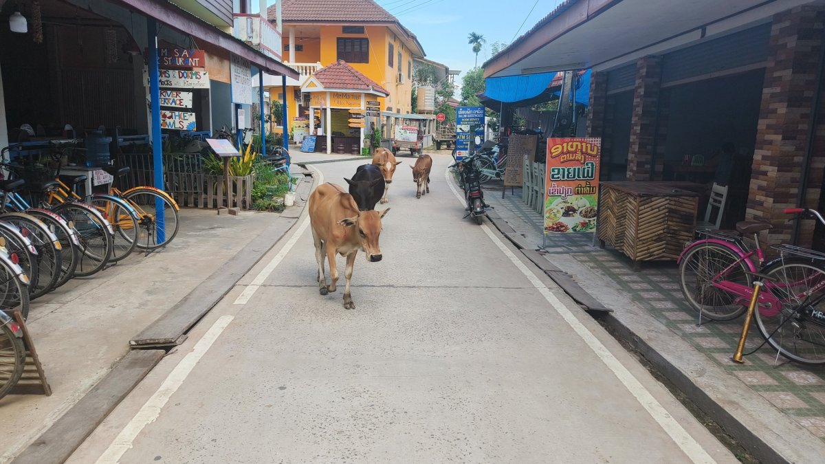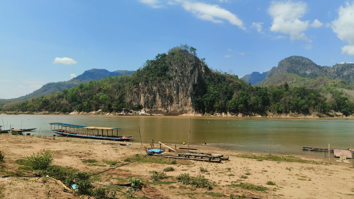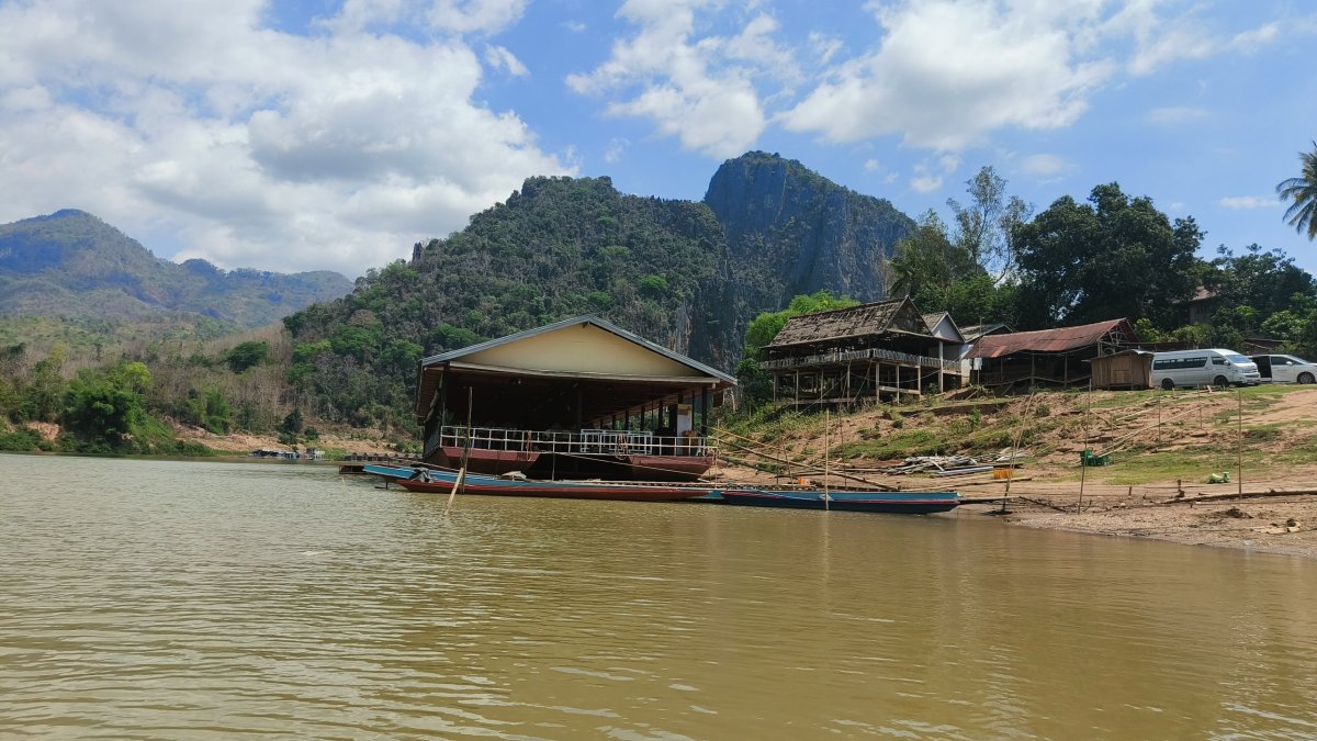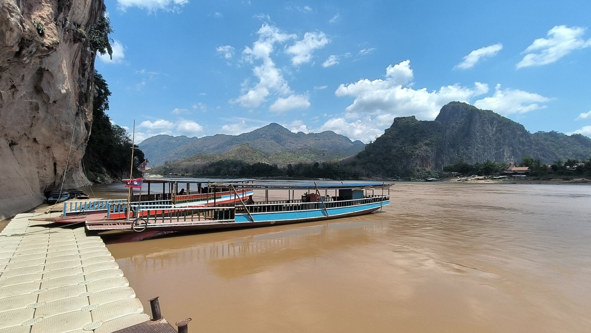 Ráno jdu na snídani a zkusím trošku zatížit žaludek. Dám si rýži s okem a toast s džemem. Teplota opět dosahuje extrémních hodnot. Abych se částečně ochránil před sluncem, oblékám si tenkou šušťakovku. Cestou zastavuji ještě na vietnamské tržnici, abych si tam zakoupil nějaký hadr, který si obmotám kolem stehen. Ťamanka mi nabídla pouze kalhoty. Silnice na sever je sice asfaltová, ale plná děr jak po výbuchu min. Tu a tam vletím do výmolu v 30 km rychlosti, div se skútr nerozsype. Můj dnešní cíl je jeskyně Pak Ou, na soutoku řek Nam Ou a Mekong. Za parking platím 5 000 kipů.