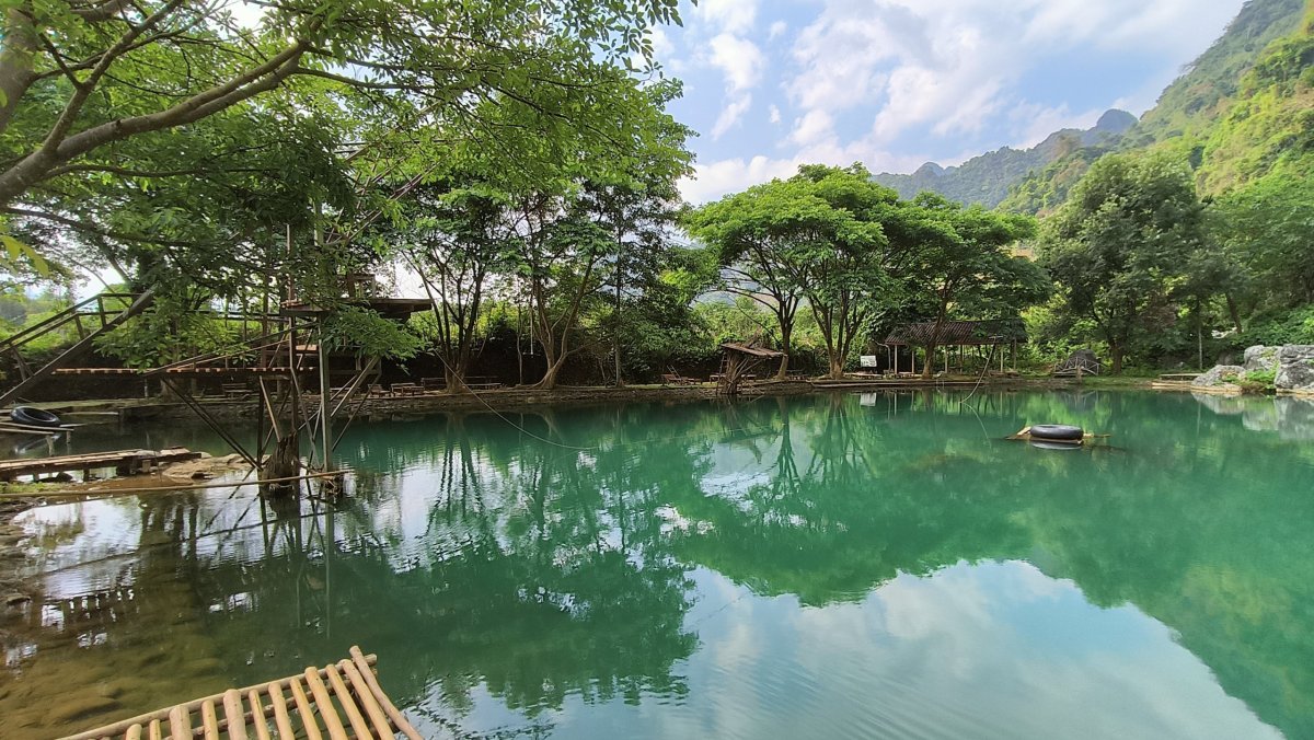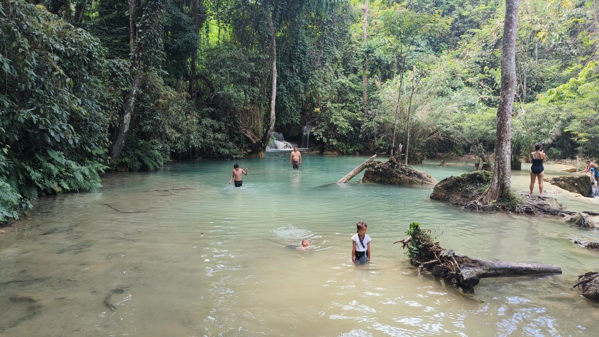 Jedu na sever, za vesnicí Phoxay leží 3 u sebe turistická místa. Jeskyně Elephant a Tham Nam, a laguna č. 4. V těch dvou jeskyních si mohou lidé prohlédnout útroby jeskyní na pneumatikách, já této příležitosti nevyužil, protože vím, že po cestě navštívím mnohem kouzelnější jeskyně. Odebírám se proto k zmíněné laguně č. 4. Prvně co mě překvapilo je asi vybírání poplatku za přejezd mostu. Ještě si říkám, kdo by v takových kotěhulkách seděl na přímém slunci a vybíral peníze. No 30 000 kipů za přejezd není zrovna málo, za to mám kokos, dalších 20 000 kipů je za vstup do laguny.