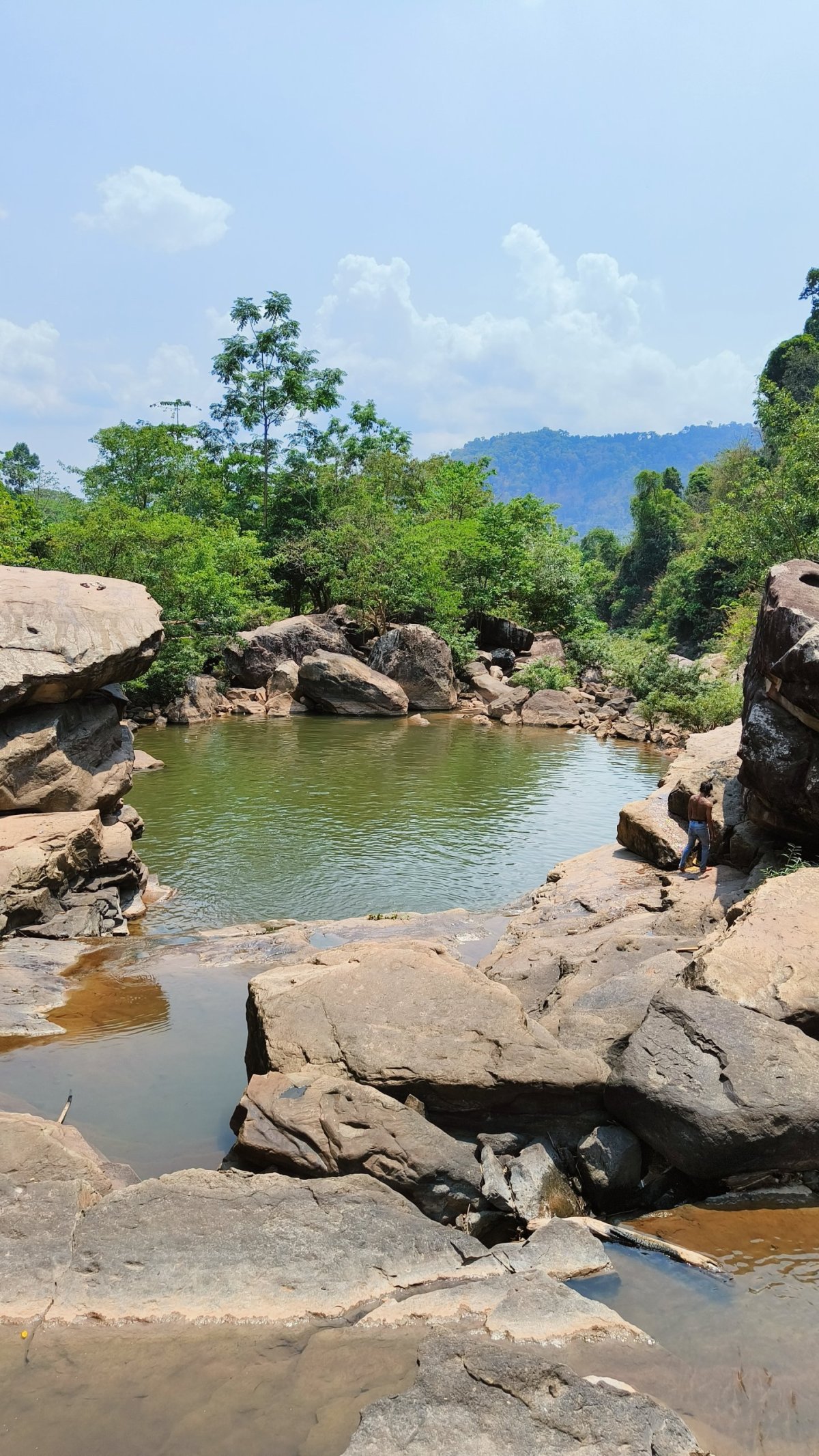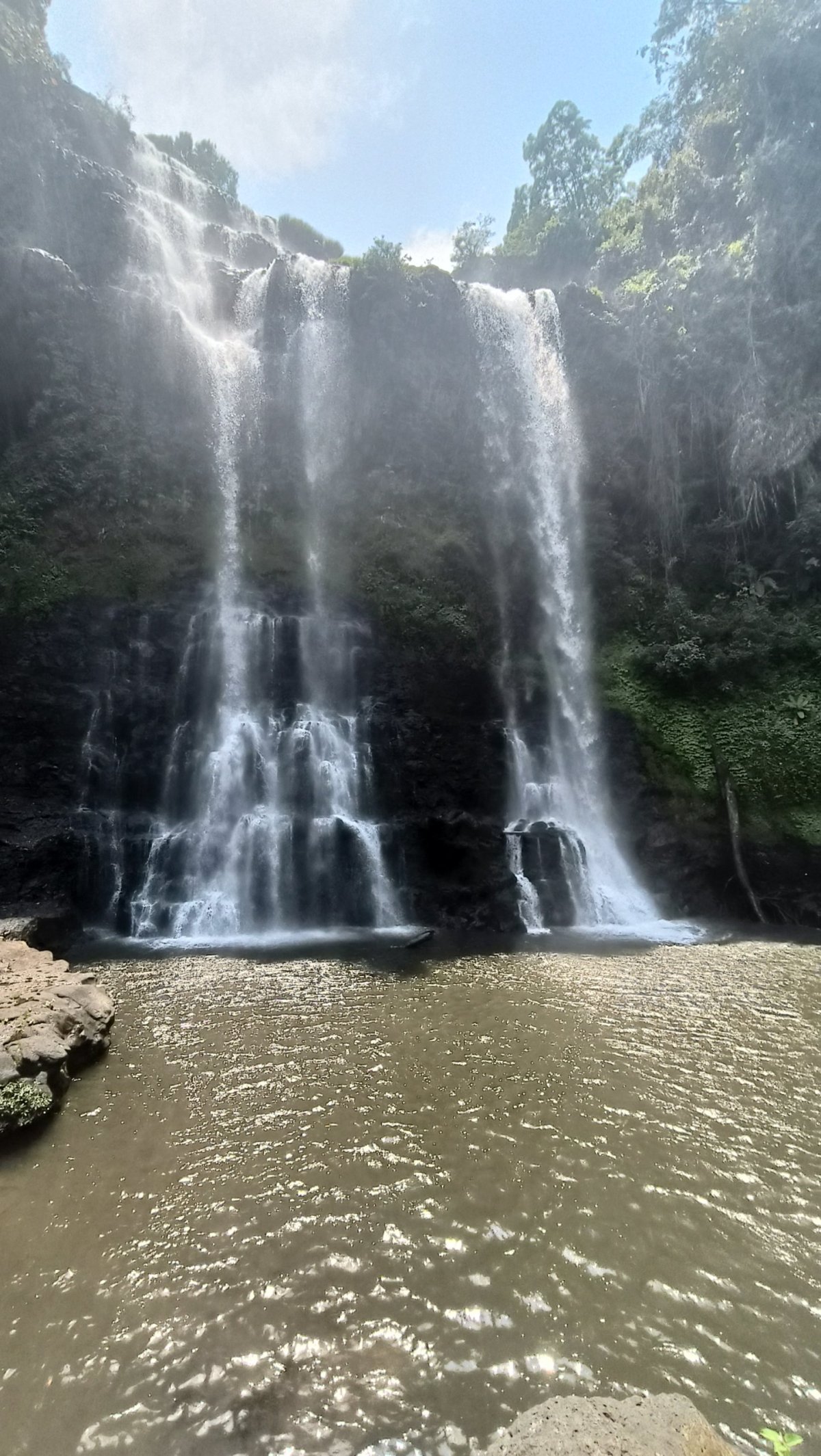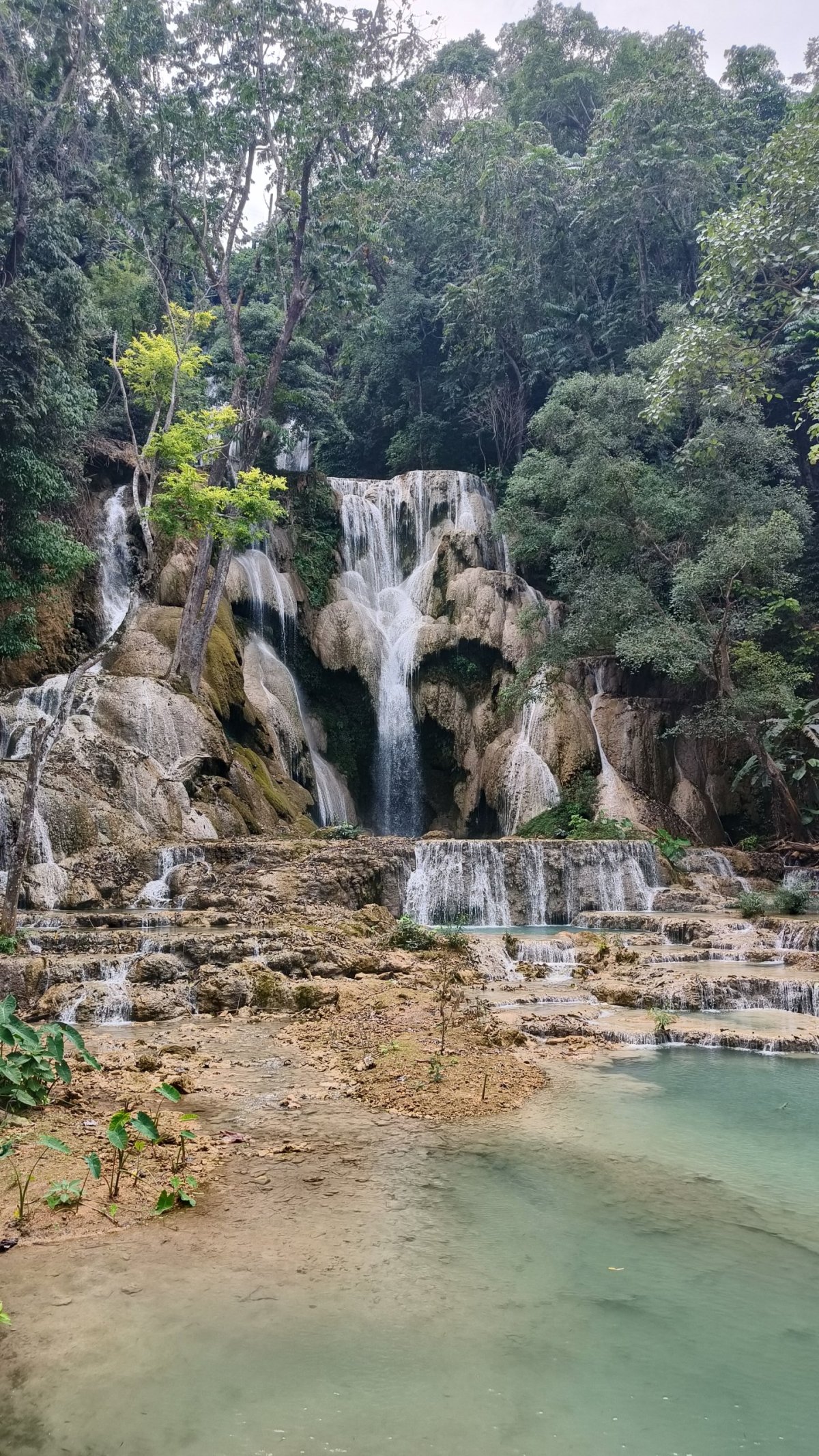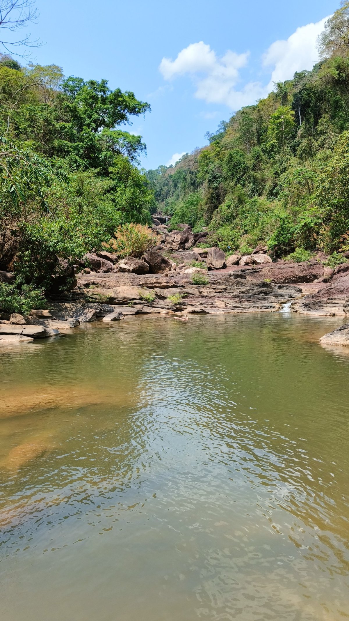 Odjížděl jsem mírně zklamaný. Za pár km narazím na zajímavé jezero, z něhož trčí mrtvé stromy. Následně odbočuji z dvanáctky na silnici 1E, konečně je menší provoz, a hlavně se zbavuji otravných kamionů. U elektrárny Nam Theun odbočuji na štěrkovou cestu, která vede k vodopádům Song Sa. Vstup 5 000 kipů, ale myslím, že to byl jen za parking skútru. Z parkoviště musíte ujít ještě asi 400 m, než se dostanu k samotným vodopádům. Ty vodopády jsou tak dobře ukryté, že tu byli jen místní děcka s magičem vypeckovaným na plné kule. Děcka skákaly z útesu do neznámé vody šipky, já si válel šunky v jednom z jezírek, které jsou zde k dispozici.