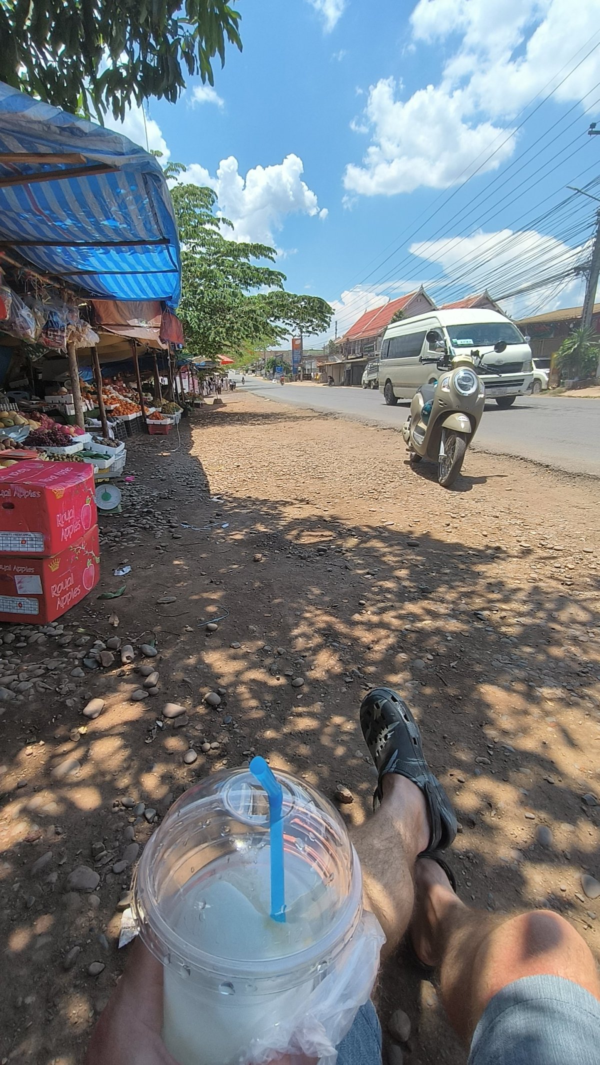 Ráno potkávám majitelku či majitele penzionu, nevím, co to bylo, malovalo se to jako žena, účes jako žena, svaly a hlas jako chlap. Byl jsem rozbity jak cikánská hračka, poprosil jsem tu osobu o pronájem skútru, rezervaci pokoje na další noc, kdy se do Pakse budu vracet z malého okruhu, a lístek na autobus na Don Det.