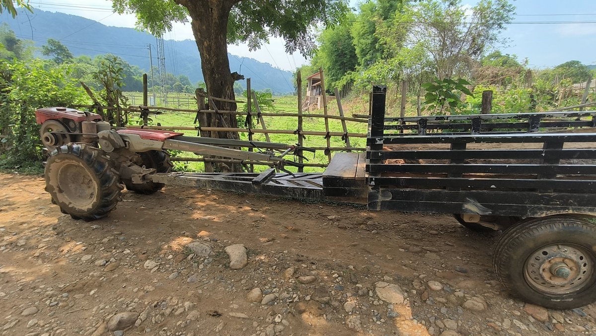 Je nový den, trochu mě bolí hlava, v ceně ubytování mám snídani, uvažuji, co si dát, aby se mi to nanovo nerozjelo. Dávám si jen vařenou rýži a čaj. Posléze jdu do půjčovny skútrů Anousay, za 180 000 kipů na den si půjčuji Honda Scoopy, budu ho mít 3 dny. V okolí LP jsou 2 významné vodopády, Tat Sae a Kuang Si. Mířím k prvnímu jmenovanému vodopádu, leží asi 15 km od centra. Po příjezdu k přívozu je mi oznámeno, že ve vodopádu není voda, a proto loďka dnes nepremává. Nakopnu mašinu a vydávám se k druhému vodopádu. Pro jistotu nahlédnu do mapy kudy nejlépe jet, navigace hovoří jasně, vrátit se do LP a pak se stočit na jih. Ještě jak jsem ve stavu vyoraného potkana, tak samozřejmě blbě odbočím a jedu cestou, která jde rovnoběžně s tou původně zamýšlenou. Ani mi to nepřišlo divné, čas jsem moc nehlídal. Po nějaké chvíli zastavuji na 4 ramenné křižovatce v Xiang Ngeun a zjišťuji kde se to nacházím. Jsem úplně mimo souřadnice. Místo abych se vrátil zpět dokud je ještě čas (stále by se to kilometrově vyplatilo), rozhoduji se pokračovat a poznat trochu venkov. Pravda, jakmile jsem vjel na silnici č. 4, razantně se zlepšil povrch silnice, což bylo něco nevídaného. Žužo dobrodružo nastává, kdy ze silnice č. 4 odbočuji na silnici č. 1. Naivně si představuji, že povrch cesty bude tomu odpovídat, přece je to jednička. Vystřízlivěl jsem po pár metrech, kdy na ni najíždím. Zprvu byla hliněná s přísadou šutrů, posléze prašná. Potkával jsem vesničany na Tak taku (Iron buffalo), traktůrek s dlouhými řídítky a vlečkou pro přepravu lidí a nákladu. Překvapivě na mě hleděli, co v těchto končinách dělá bledá tvář. Postupem času se cesta měnila v bahnitou močku. Byly místa, kdy přes celou šířku vozovky nebylo byť 10 cm suchého povrchu na šířku pneumatiky. Vyústilo to k celkem třem motodržkopádům. Jednou jsem dokonce zapadl asi do 30 cm bahna, a nemohl jsem ten skútr vyprostit, a protože jsem cestoval v cuklích, tak mi ta cukle uvázla v bahně. S odstupem času to shledávám jako dobrou volbu, nevím, jak bych čistil botasky od bahna. Aby těch pastí nebylo málo, po obou stranách byly vysázené keře s 1,5 cm ostny, které se mi zaryly do stehen a předloktí.