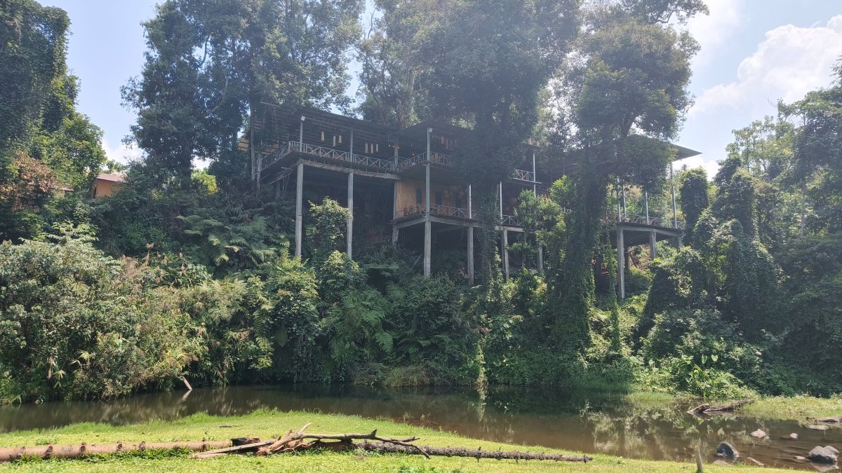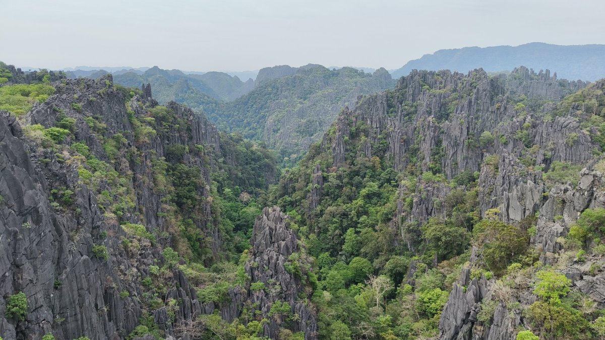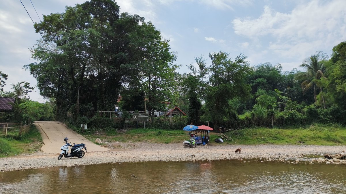 S novým dnem přichází nové dobrodružství, po snídani musím chvíli plánovat, kam dnes vyrazím. Alokoval jsem si na to městačko moc dní a docházejí mi možnosti. Je to odpočinková dovolená, tankuji plnou nádrž a jedu co nejseverněji co jde. Dojedu do vesničky Somsavat s pár chatrčemi kolem cesty, otáčím se a jedu zpátky. Už to bylo monotematické. Ocitám se v trochu větší vesničce Pha Tang, před mostem odbočím vlevo. Nejdříve jedu po úzké panelové cestičce, která mě zavede k mostu, přes který projíždí rychlovlak, most podjedu a pokračuji po cestě se skalnatým povrchem.