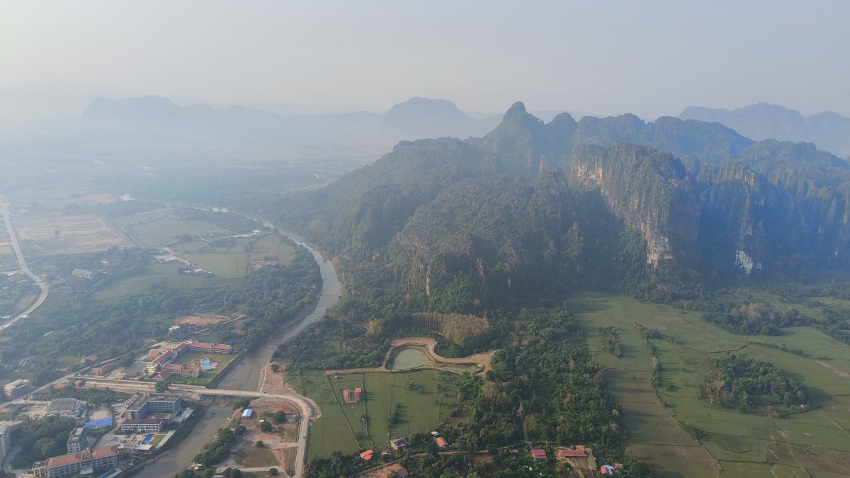 Výhled na skály byl skutečně dechberoucí, prolítávali jsme nad celým Vangviengem a z té výšky si ani neuvědomíte, že je pod vámi město plné odpadků, rozbitých cest a vychrtlých krav. Na mě to působilo, jak bych prolítával nad Vysočinou. Dle mého názoru to byly dobře utracené peníze, za balón zaplatíte asi o 20–40 USD víc a nic z toho nemáte, jen vystoupáte a zase klesnete, tím to hasne. Ťuk ťuk nás zpátky zavezl do hotelu. Je to poslední volný den ve VV, jedu naposledy protáhnout skútr a vydat se na místa, kde turistu nepotkáte. Už ani nevím, jak se to tam jmenovalo, jediným poznávacím znamením byl mohutný sesuv půdy. A tady se u mě rozvinula zvláštní úchylka nebo jak by se to dalo nazvat, u každého dalšího sesuvu půdy jsem dokázal na něj čučet dlouhé minuty a že jich po cestě bylo fest. Ku večeru odevzdávám skútr a jdu na místní trhy koupit nějaké cetky rodině a přátelům.