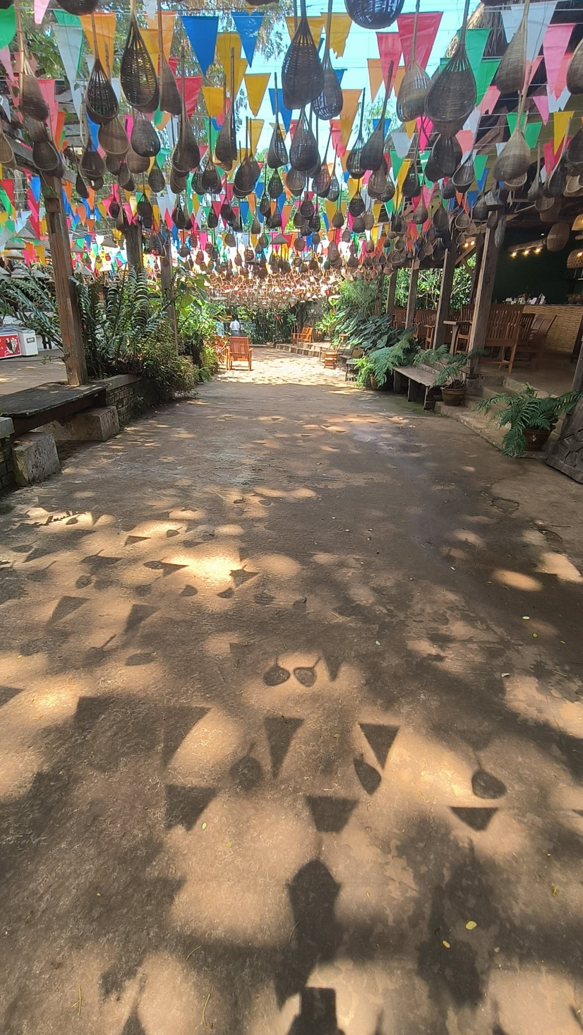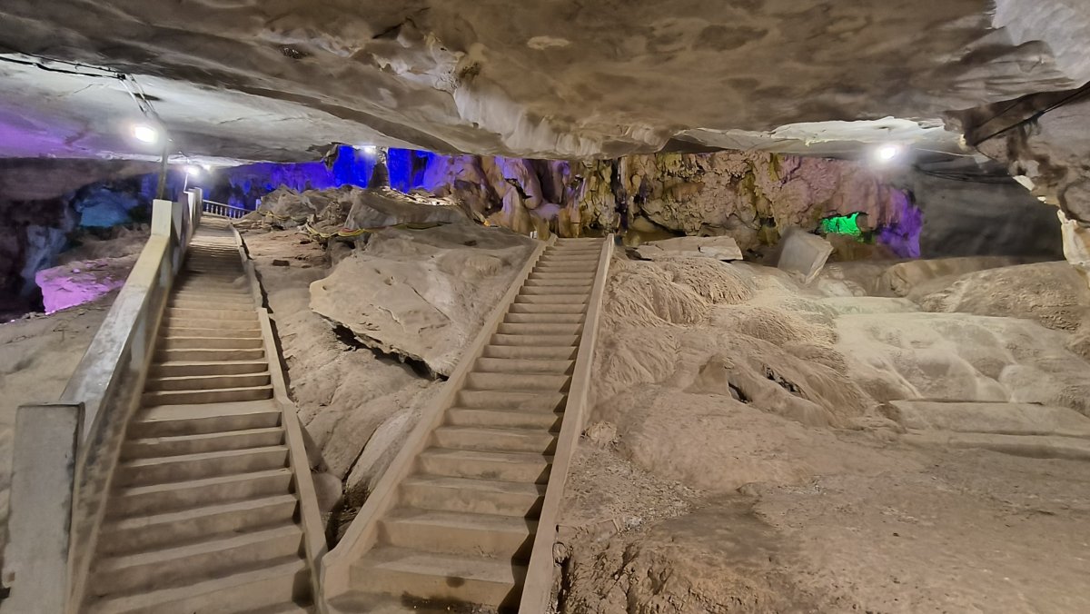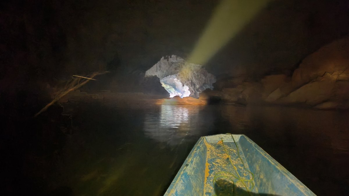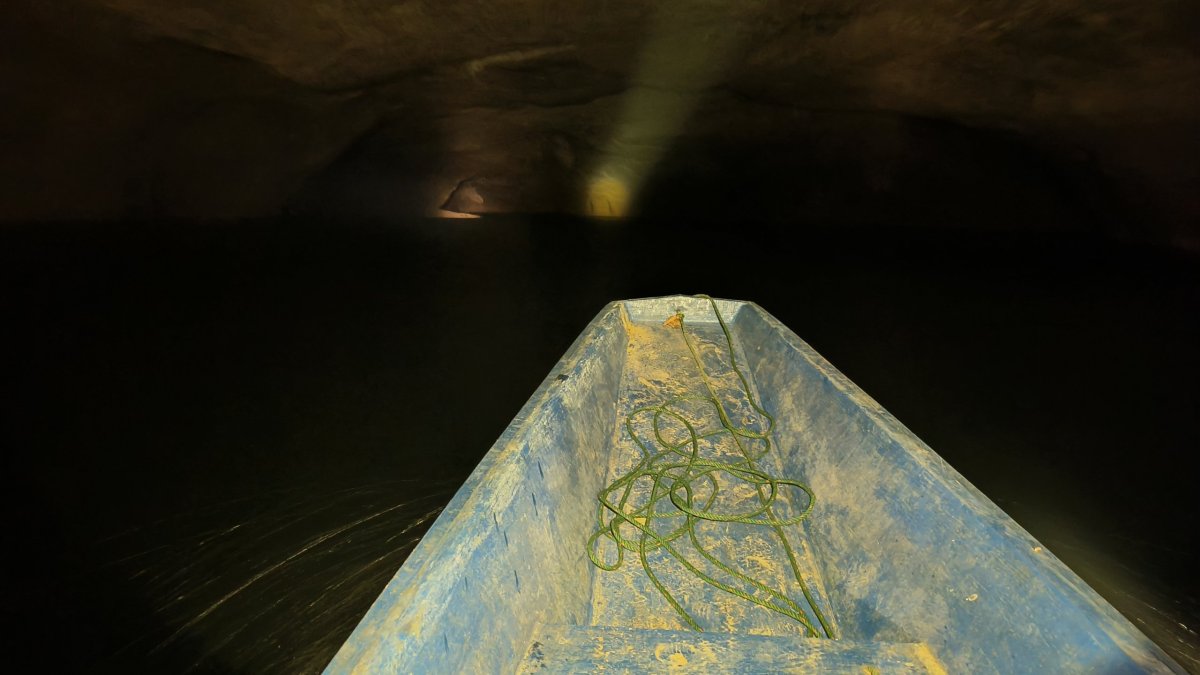 Po asi 40 minutách dojedeme na místo, kde to jinudy nejde, proto se domnívám, že loďku tu zaparkujeme a my musíme do osady po svých. Nepřišlo mi divné, že je furt tma. Po asi 200 metrech, kdy už vidím světlo na konci tunelu začíná přibývat vody a já nevím kudy dál. Najednou slyším kravál, otočím se a jdu zpět. Lodník na mě volal, že tohle není konec cesty, musíme jet dál loďkou, ale potřebuje pomoct ji vysmyčit. Proč to neřekl dříve, nikam bych neodcházel :-D Asi 30x jsem se mu omluvil a chopil se lana, abych mu pomohl vysmýčit tu loďku. Ti další 2 nepomáhali, byla to starší žena se svým asi 5letým vnukem. Loďku se nedařilo vytáhnout, potřebovali jsme překonat asi půlmetrový rozdíl hladin. Proto jsme se rozhodli nasbírat metr dlouhé klacky a podložit loďku, s tím že ji budeme po nich šibovat. To taky nepomohlo. Nakonec se rozhodl lodník i za cenu rozbití lodního šroubu tento schod překonat svižnější jízdou. Párkrát se odrazil od skal, div neudělal díru do trupu, ale kupodivu se mu to podařilo. Nastoupili jsme zpátky do loďky a jeli dál. Dorazili jsme k místu vylodění, schylovalo se k bouřce, proto lodník se mi rozhodl dát jen 15 minut na průzkum. Nic moc tu není, pár chatrčí, nějaké restaurace, a to je všechno. Někteří turisté převážejí na loďkách kola či skútry, odtud se dá jet někam dál, to ovšem nebyl můj případ. Zpátky už jedu jen já a lodník, cesta trvá o několik minut méně, cestou potkáváme další loďky, proto musíme jet krokem, abychom se nesrazili. Úspěšně jsme dorazili na začátek, odevzdávám čelovku a vestu, a jedu na ubytovnu. Večer se koná v „hotelové“ restauraci vesnická zábava.