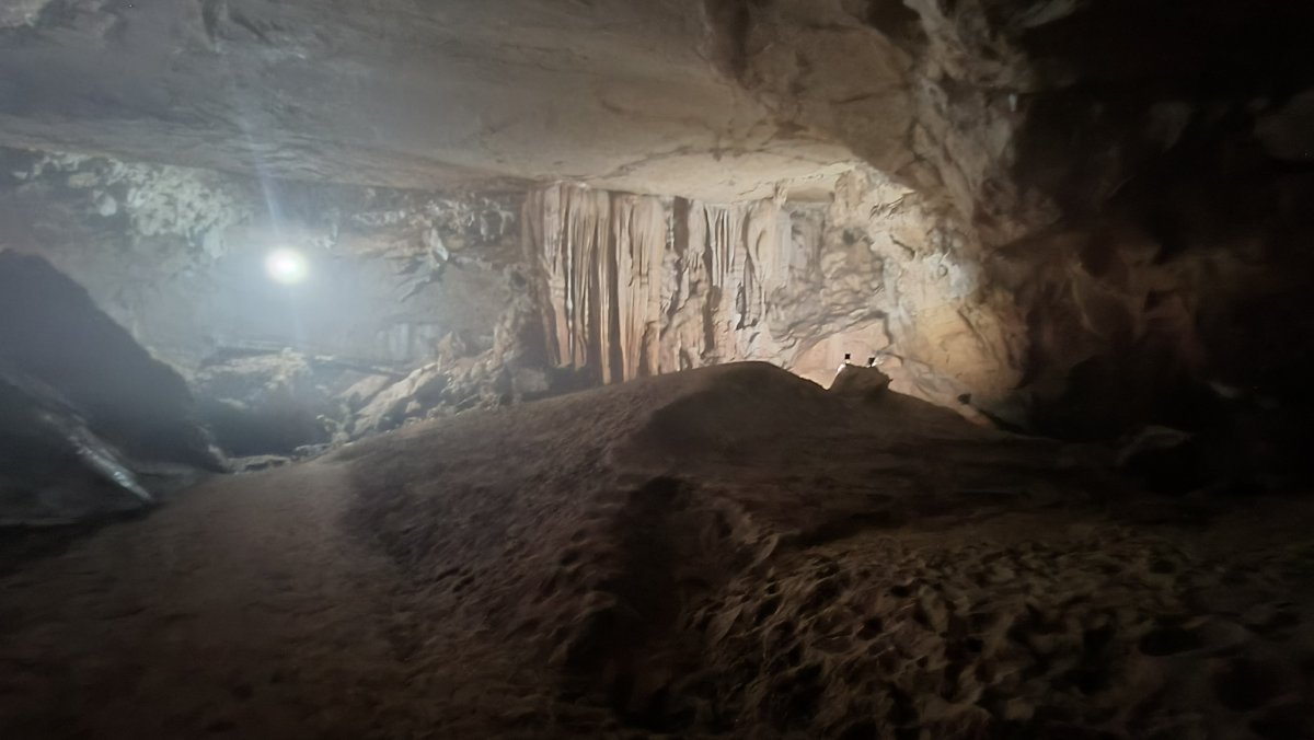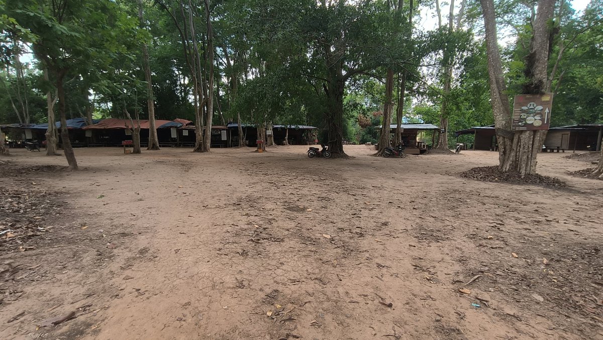 Další zastávkou je jeskyně Tamnang Ene, o které jsem třeba už slyšel zajímavé věci, že má rozlehlé komory a dá se tam vyblbnout. U závoráře platím 50 000 kipů, k samotné jeskyni je to pak ještě 500 m. Za těch 50 000 máte možnost pěší prohlídky, ale jen z kraje jeskyně, pokud chcete vidět ty obří komnaty, musíte si za 200 000 koupit vstupenku na kajak. Chtěl jsem si ji koupit, jenže pokladní řekl, že na kajak musíme být aspoň 2 turisté. Čekám tedy asi hodinu před jeskyní, jestli se nebude chtít někdo projet. Dorazilo pár Číňanů, jenže těm stačila jen pěší prohlídka.