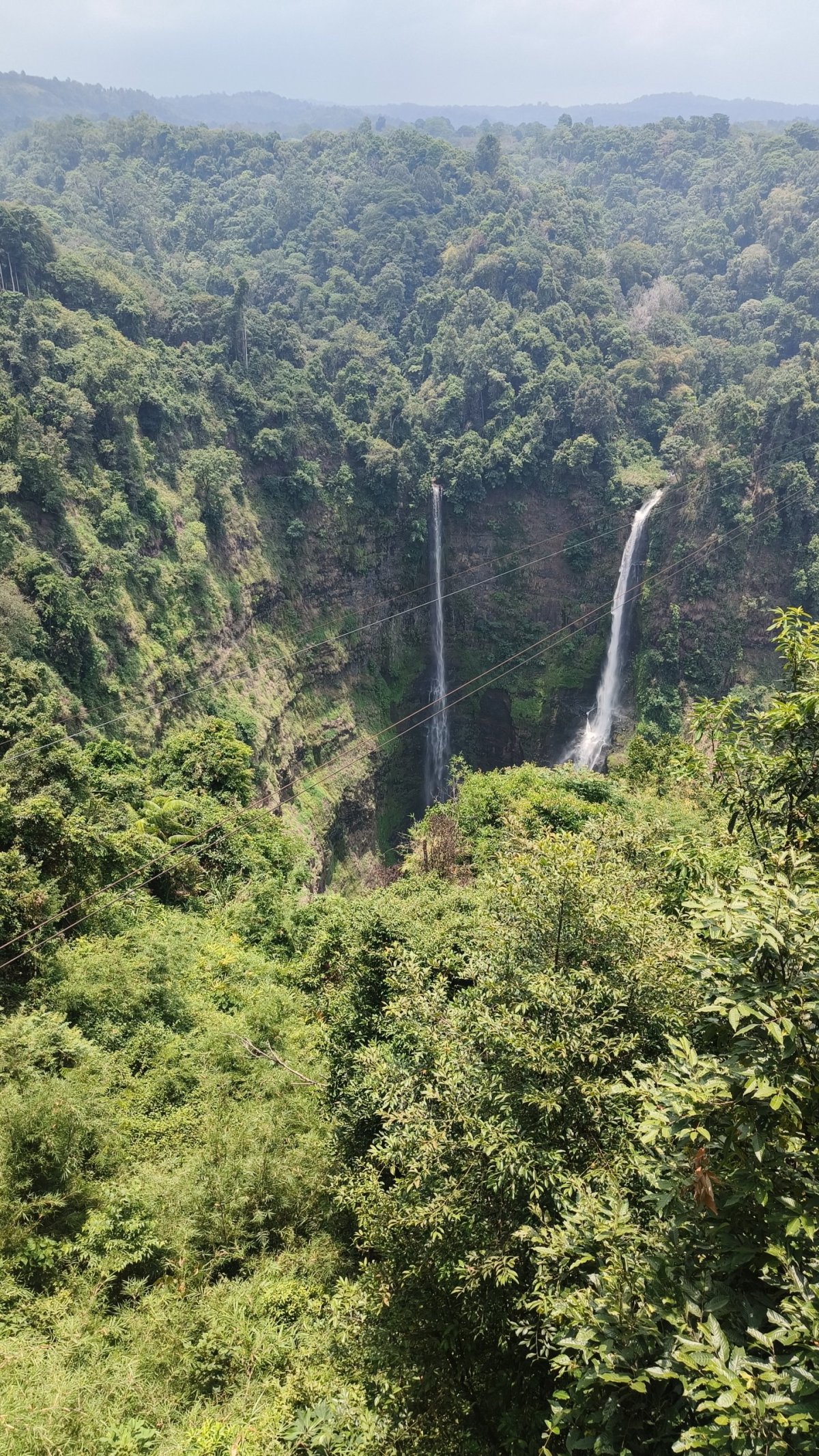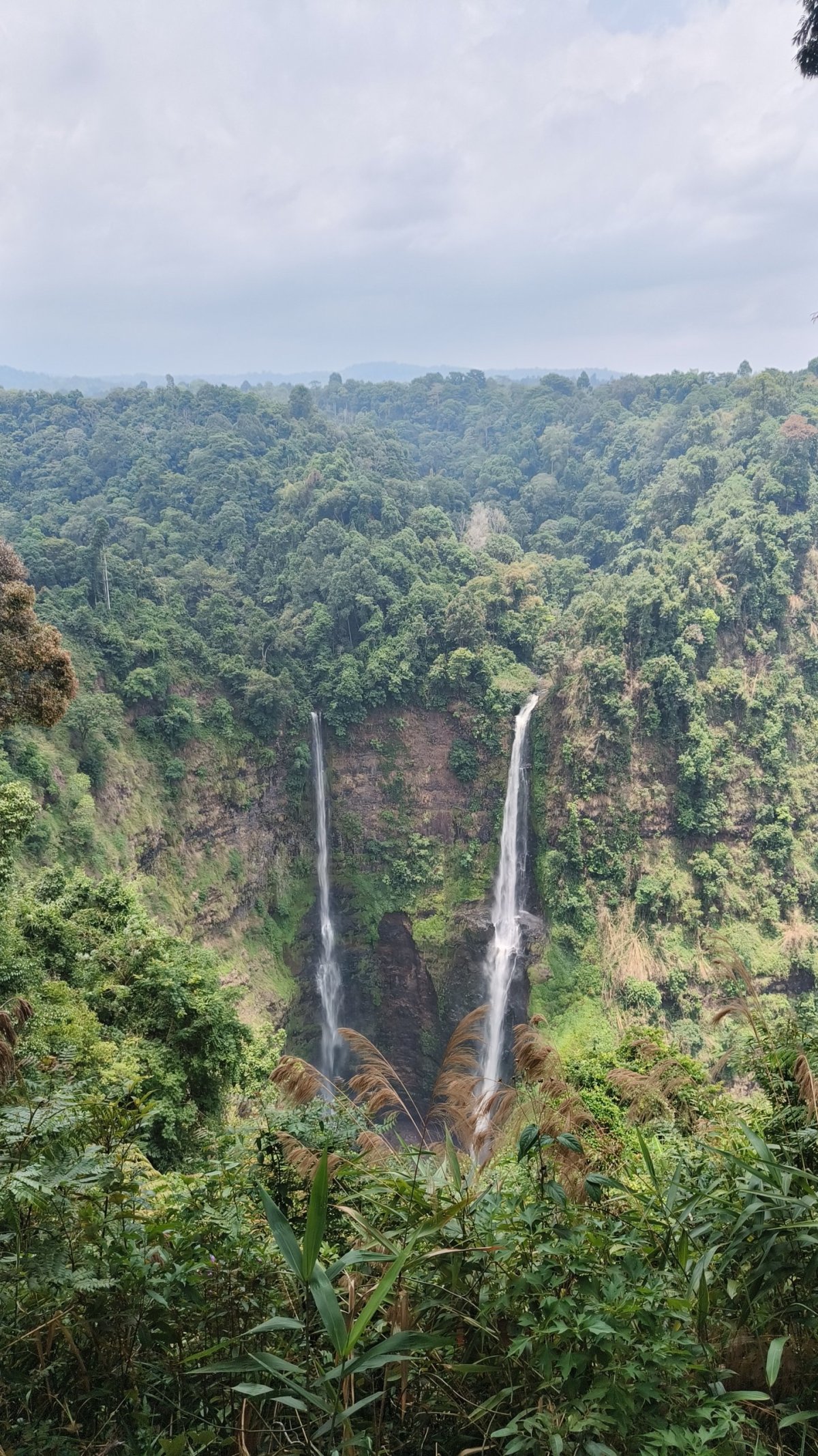 Moped mi za chvíli přivezla nějaká babka a já se vydal na 3denní okruh po laoské vysočině. Vjíždím na 4 pruhovou silnici 16E, snad první cestu v zemi, kde nevidím jedinou díru. Po necelých 35 km jízdy se na pravé straně nacházejí 2 vodopády, Tad Fane a Tad Yeung. První jmenovaný se nachází uvnitř resortu, vstupné činí do 2 EUR, hlavním tahákem a trhákem je jízda na ziplajně nad propastí. Jsou zde natažena 2 lana paralelně, jeden pro účastníka a druhé pro instruktora, který ho natáčí. O pár set metrů dál je vodopád Tad Yeung, lidí zde bylo po málu, vstupné rovněž činí kolem 2 EUR a k vodopádu musíte sejít nenápadnou stezkou v džungli. Jinak vodopády nemají kromě hřmící vody co nabídnout, není to Iguazú. Někde před Paksongem začalo fest pršet, schoval jsem se do Amazon Cafe, koupil čaj a čekal, než déšť ustane.