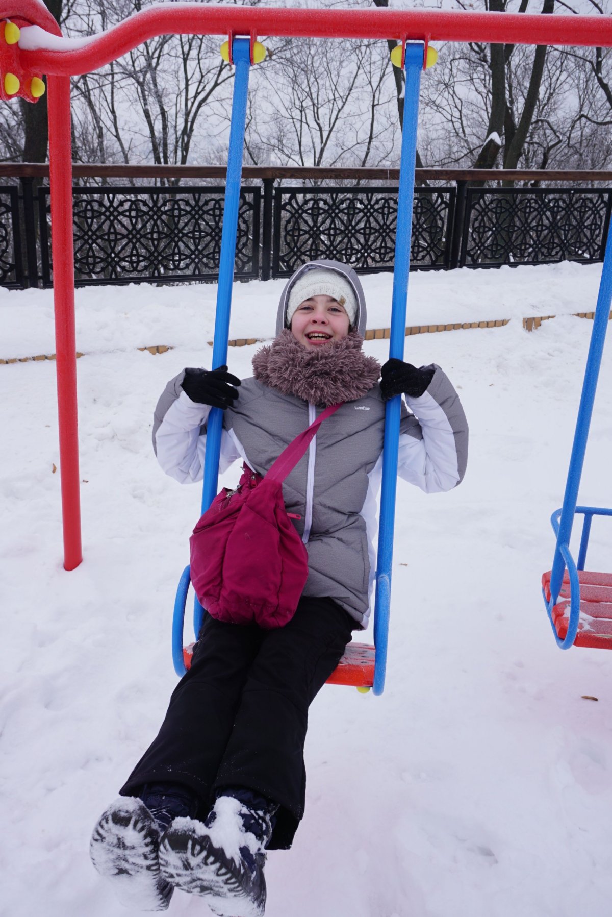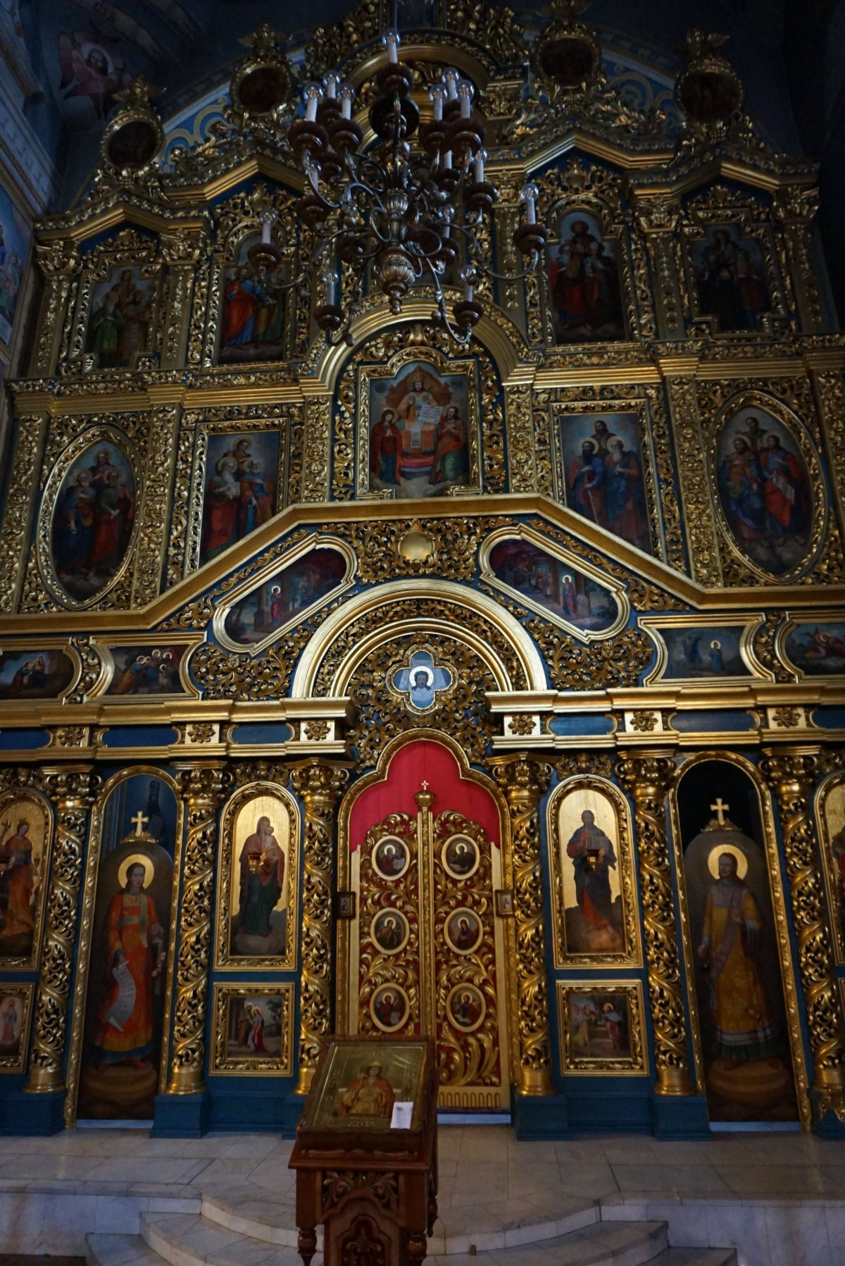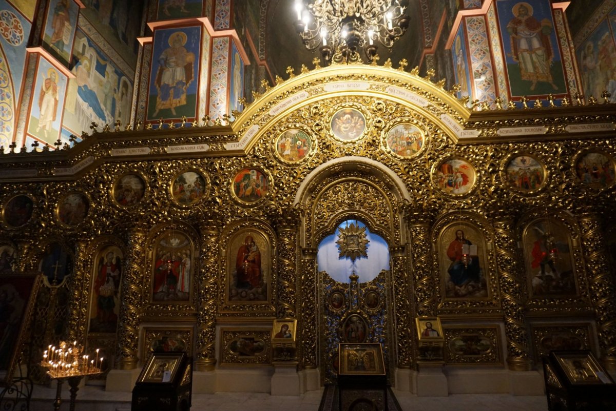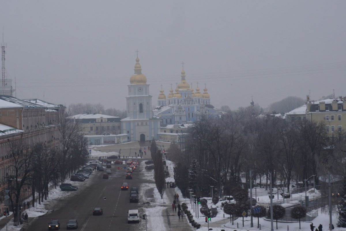 Jsme na kopci. Jdu se kouknout na Dněpr. Dcerka objeví hezké hřiště a vůbec ji nevadí, že je pod sněhem. Naše túra po chrámech začíná u Chrámu svatého Michala se zlatou kupolí. Ohromí nás bohatá výzdoba. Není snad místo, které by nemělo malbu či nějakou ozdobu. Pravoslavné chrámy jsou jinak členěné než naše kostely. Jsou hodně široké a zadní třetinu odděluje velikánský oltář oddělující sakristii od kněžiště. Oltář je spíše pozlacená stěna se spoustou obrazů, případně soch a více či méně skrytými dveřmi.
