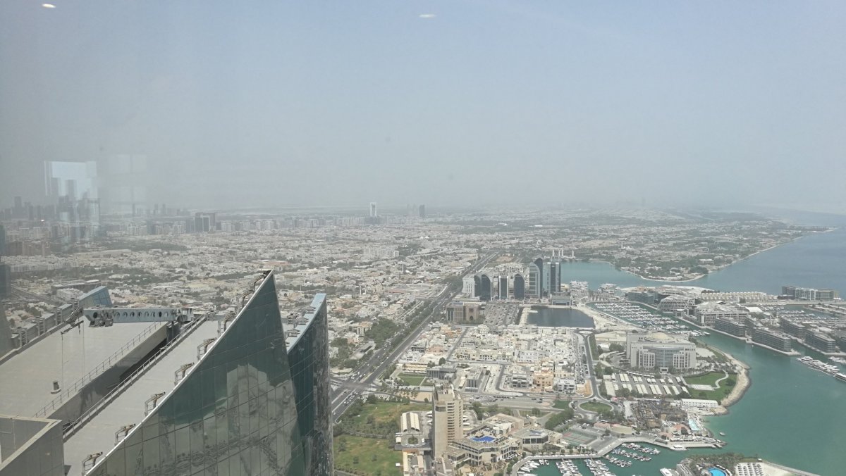 Po návštěvě mešity jsem měl ještě vyhledanou vyhlídku u promenády v Abu Dhabí. Vyhlídka se jmenuje Observation Deck at 300, která je v jednom ze čtyř mrakodrapů Etihad Towers. Ke vchodu nás dovezl taxi. Cestou k vyhlídce jsme jeli kolem mrakodrapu Capital Gate, který je nejšikmější stavbou světa. Překonal i Šikmou věž v Pise. Lístek na vyhlídku stál 95 AED, z čehož je 55 AED poukaz, který můžete využít v kavárně na vyhlídce. Pokud Vás bude více, poukazy lze sčítat. Můžete si koupit kafíčko a vychutnat si ho při výhledu na celé Abu Dhabí.