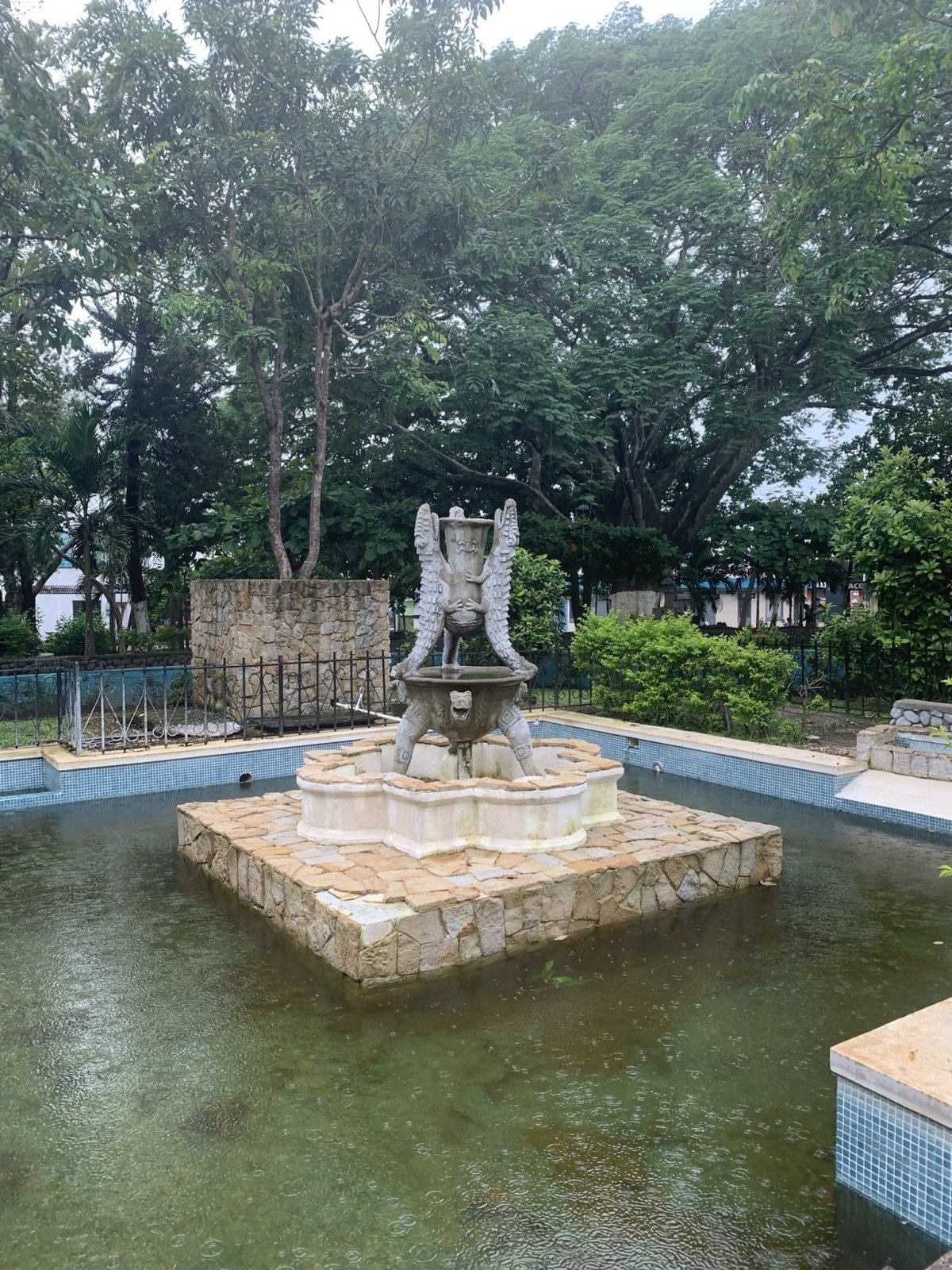 Pak se přesouváme na náměstí Plaza Mayor, kde to opravdu žije, všude je slyšet hlasitá muzika. Obdivujeme ruiny fary a chrámu svatého apoštola Jakuba (Ruinas de la Parroquia de Santiago Apóstol). Ruiny pocházejí z nedokončené budovy, jež byla poničena zemětřesením roku 1910 a poté byla její další stavba pozastavena. Dnes slouží především jako menší park a uvnitř je krásná zahrada.