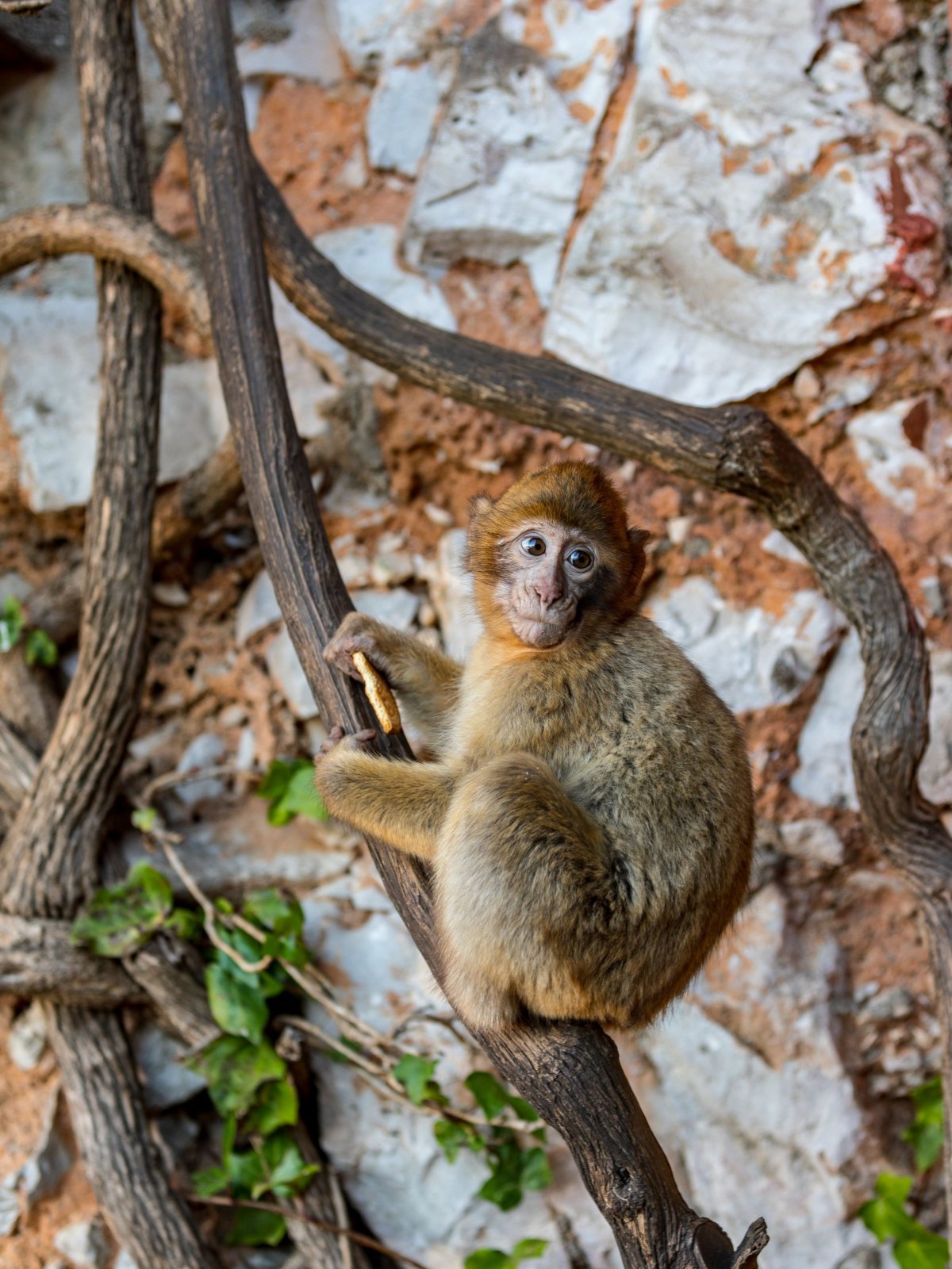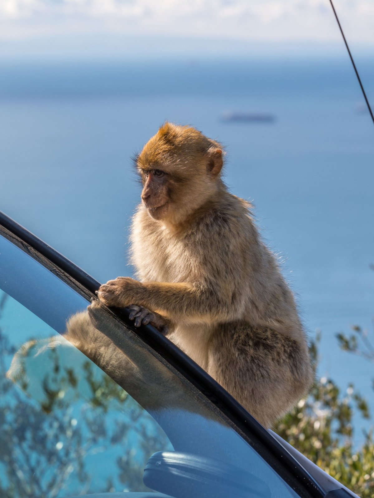 Zdaleka největší atrakcí Skály jsou opice. Gibraltar je jediné místo v Evropě kde trvale žijí. Makakové bezocasí. Odkud a kdy na Gibraltar imigrovali není úplně jasné. Ale už se jich nikdo nezbaví. Ani nechce. Legenda praví, že dokud budou opice na Skále, bude Gibraltar v Britských rukou. A tak si je místní hýčkají. Dostávají zbytky z restaurací, nemocnic i vězení. Proč nemigrují na Iberský poloostrov a dále do Evropy naopak jasné je. Nepřejdou přes ranvej, neb se bojí letadel. Je jich hodně a jsou milé a drzé současně. Je třeba přiznat, že všude jsou rozmístěna přísná upozornění zakazující krmení. Podezírám opice, že neumí číst. Nic si z toho nedělají. Anebo se ještě nenaučily anglicky. Posedávají na skalách, na stromech, uprostřed chodníku, ale co hlavně; sledují nás. Čekají na svoji příležitost. Je to psycho. No dobře, zas tak moc ne. Prostě koukají, kde by co sežraly a ukradly. Jsou to naši blízcí příbuzní přece.
