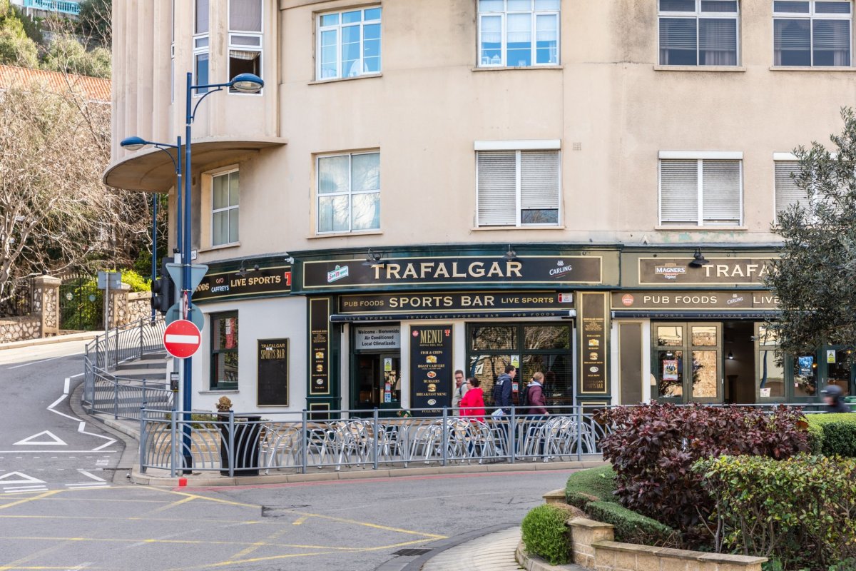Kousek od rezidence guvernéra jsme se usadili na zahrádce skromnější restaurace. Co jiného si dát než Fish and Chips, že. Kvalita vysoká, cena taktéž. Servírováno vtipně na novinách oslavujících vítězství Angličanů nad Francouzi u Trafalgaru. Platíme kartou. Místní měna je Gibraltarská libra a jde samozřejmě řádně směnit, ale pro jednodenní pobyt je to zbytečné. Lze platit i Eury, ale ve srovnání s místními restauratéry jsou pražští taxikáři pouhými čučkaři. Nedoporučuji.