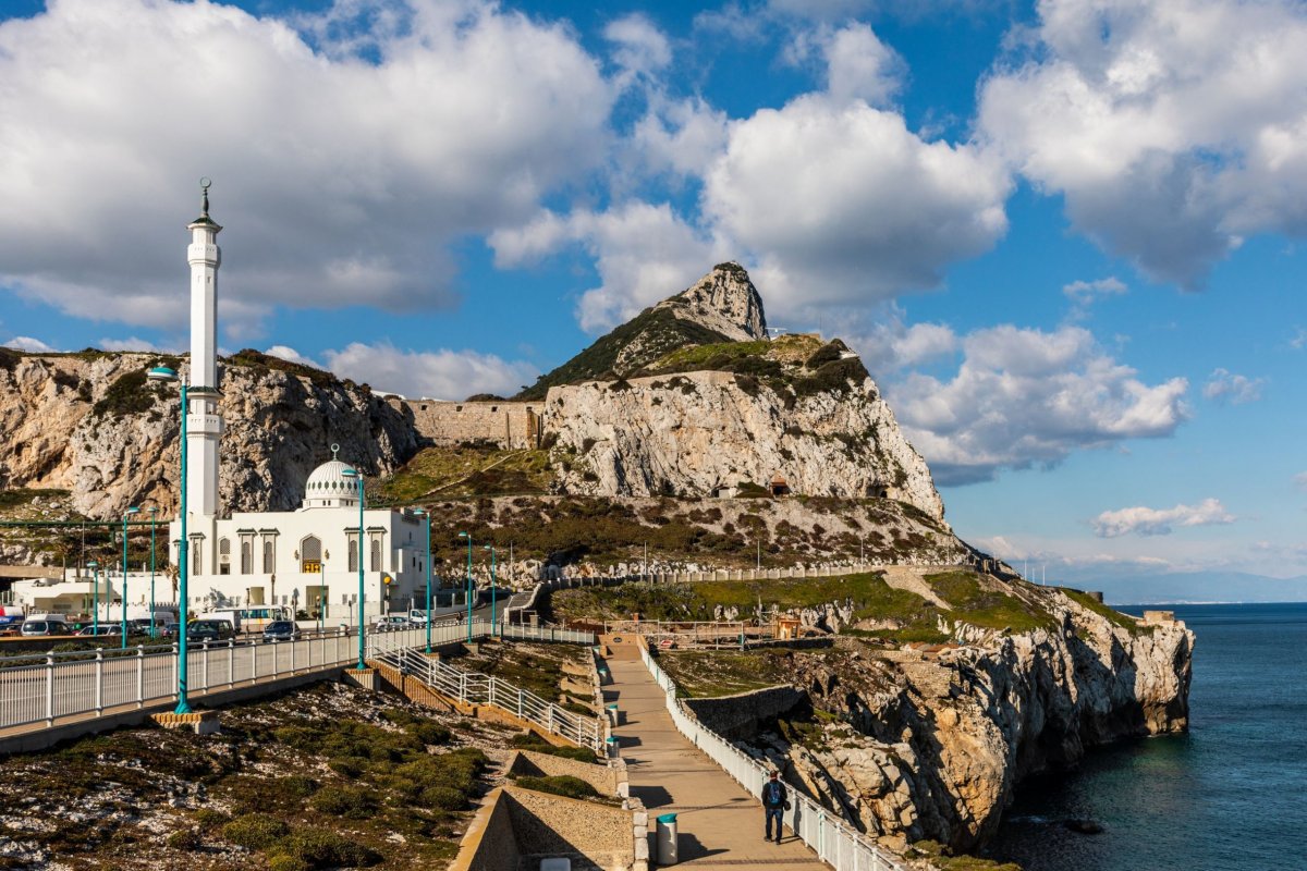 Otáčíme se zády k Africe a vracíme se na parkoviště k autu. Před námi impozantní The Rock a pod ním neméně impozantní mešita. Byla otevřena v roce 1997 a je darem saudského krále. Kdybyste plavali přes úžinu z Afriky na Gibraltar, tak první co zříte je tato mešita. Ne, není to žádný dvojsmysl, tak to prostě je.