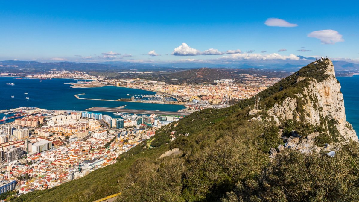 V blízkosti horní stanice lanovky je i skutečný vrchol Skály. Ten ale nezdoláme. Je ve vojenském pásmu. Vzhledem k silnému větru máme co dělat abychom udrželi rovnováhu i na vyhlídkových plošinách, opřeni o zábradlí. Výhledy jsou úžasné. Směrem k pevnině typická, šikmá, vápencová skála, ozdobená řadou telekomunikačních a vojenských zařízení. Přístav Gibraltar s jachtami i velkými výletními parníky, a především Gibraltarský záliv nebo také záliv Algeciras. Obojí je správně. Je pozoruhodné, že i dnes trvá spor mezi Španělskem a Británií komu že ty vody vlastně patří. Dle Utrechské smlouvy (1713) byl Británii postoupen Gibraltar - pevnina a přístav, ale bez nároku na teritoriální vody. Britové si ovšem myslí že ten nárok mají, a to, jak je běžné, do vzdálenosti 3 námořních mil od břehu, což je někde v půlce zálivu. Vzájemně si tu a tam zatýkají rybáře a dělají naschvály. A to je Británie ještě pořád členem EU. Zajímavé bude co bude až jím nebude.