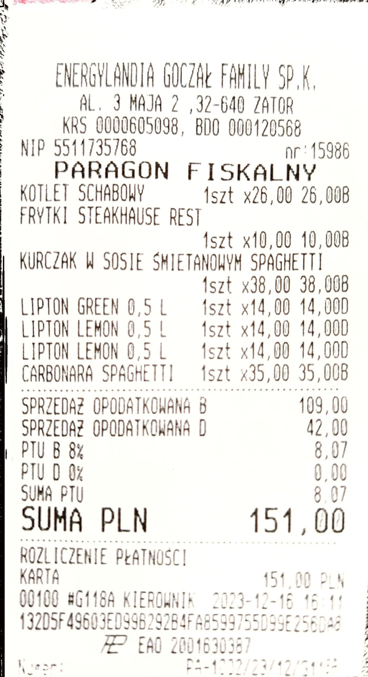 Ráno jsme vstaly, nasnídaly se a na 11 hodinu byly již připravené před Energylandií. V zimě se otvírá od 11 hodin. Užívaly jsme si hlavně horské dráhy atrakce zábavného parku, které byly absolutně bez čekání. Zašly jsme i na bruslení na ledovou plochu, kde Vám půjčí brusle a helmu. V době oběda jsme si opět došly na jídlo a až do večera jsme trávily čas v Energylandii. Nějaké peníze jsme také utratily za různé hry, kterých je v zábavném parku plno - hody koulí, štěstí, automaty výherní plyšáky, hračky atd. Nic jsme nevyhrály. Pokud tam někdo jede, měl by myslet na to, že lístek na parkoviště si musí koupit se vstupenkou online, nebo hned před vstupem na kase. Bez platného lístku neodjedete z parkoviště. Takže pokud večer zjistíte, že nemáte lístek, budete se muset vrátit zpátky na kasy, koupit si tiket a pak budete moci odjet. Musím říct, že Energylandia má své kouzlo v zimě. Určitě se vrátíme příští rok taky v zimě. Sice nefunguje plno vodních atrakcí, ale za to horské dráhy a další včetně autodromu atd. jezdí v plném proudu a je to absolutně bez lidí - bez čekání. To je hlavní výhoda, řekl bych, zimní návštěvy. Nemusíte stát žádné fronty, kdy prostě člověk může jenom jezdit. Například jen vyleze z horské dráhy nebo autodromu, oběhne, sedne a hned znova jede. To se mi na autodromu líbilo. Děti si to opravdu hodně užily. Počasí nám vyšlo, nic nepadalo. V sobotu teda k večeru začalo mrholit, ale teploty byly kolem pěti stupňů. Jinak bylo počasí celkem dobré. Poté, co jsme večer opustili Energylandii, jsme se vyspaly. Ráno jsme vyrazily zase směrem domů. Cestou jsme si ještě nakoupily, protože v neděli mají Poláci standardně zavřené obchody. Ale protože je před Vánocemi, tak v neděli mají otevřené obchody stejně jako u nás čtyři týdny před Vánoci. Návštěvu zábavného parku v zimě rozhodně doporučuji.