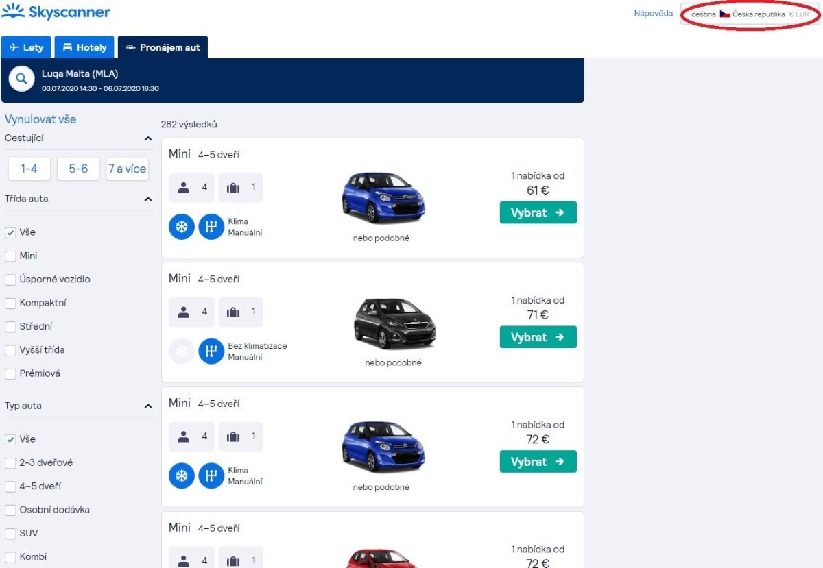 Viz screen. U CZ verze to ukazuje klasiky typu Rentalcars, Holidaycars atd a u US verze zase ty výše zmíněný weby.