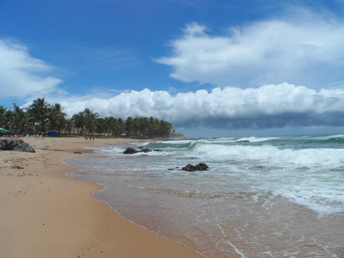 Já jel busem asi 90 km na sever do Imbassaí (od busu je třeba k pláži dojít asi 2 km), kde řeka vytváří jezero barvy čaje oddělené od oceánu krásnou pláží. Pokud větší vlny nenahnaly ropu i do toho jezera, dalo by se v něm pěkně koupat (při mé návštěvě v únoru 2013 mělo 32°C). O něco jižněji je známé turistické městečko Praia do Forte, kde byla jen úzká pláž (asi byl zrovna příliv) a moc dlouho jsem se tam nezdržel.