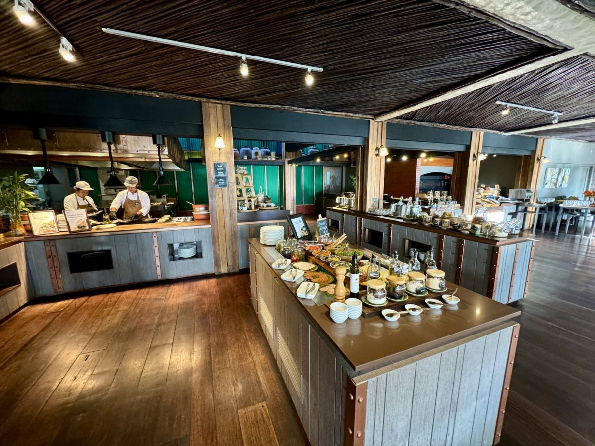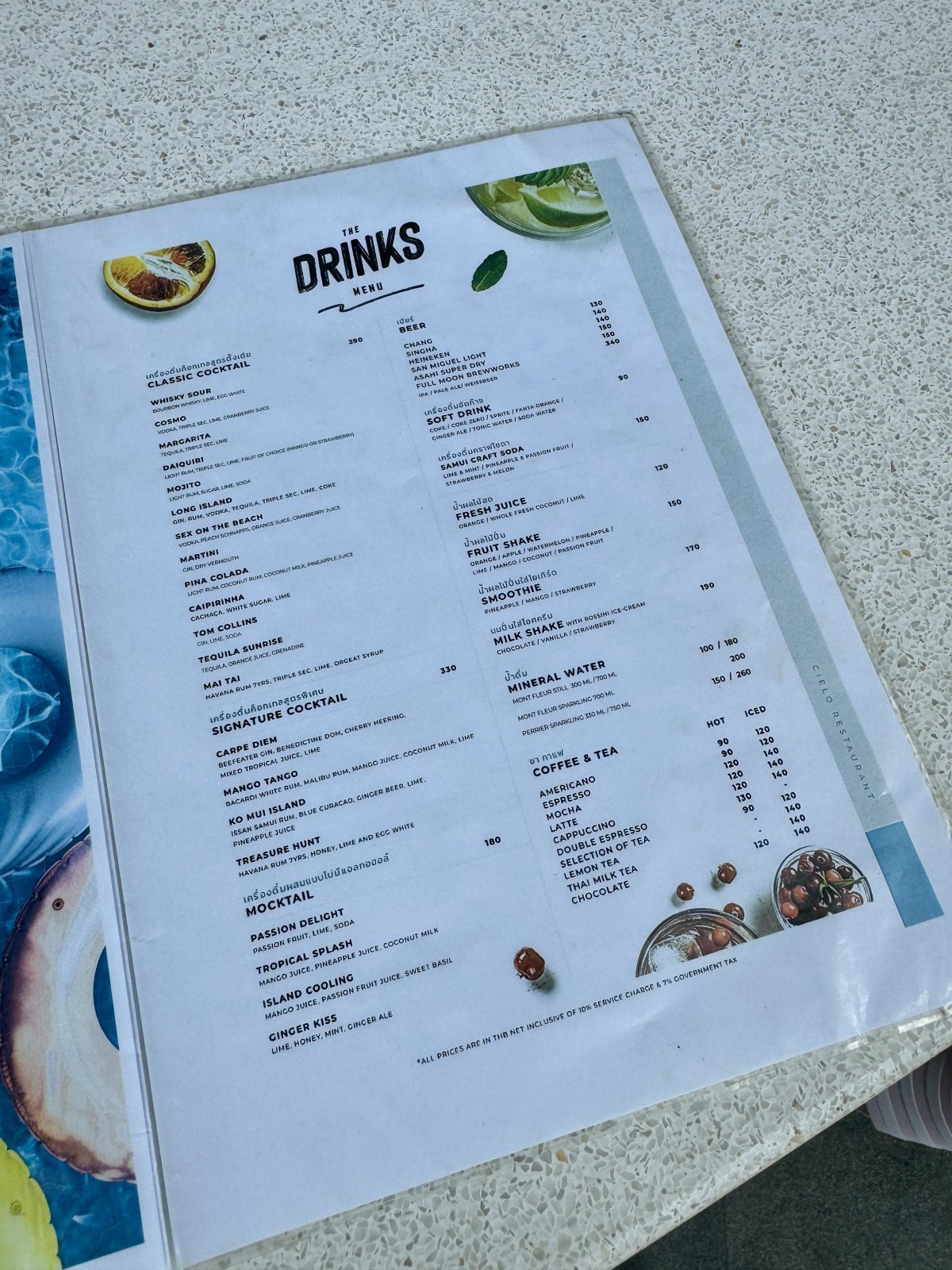 Zbytek stravování řešíme v hlavní restauraci u pláže. Ceny tu jsou poměrně vysoké, cca 500 THB za jídlo. Nakonec jsou ale ucházející, protože v restauraci u silnice se najíte za 100 - 150 THB s tím, že musíte čichat neskutečný smog a poslouchat hluk rušných silnic. Zde je jen šum moře.