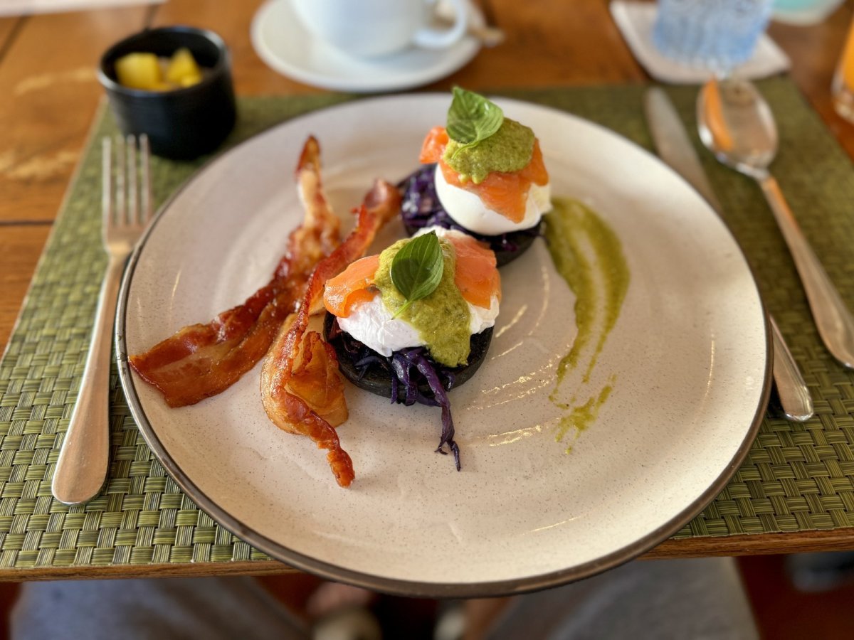 Zprvu člověka zaskočí výběr, který je opravdu malý. Ale jen zdánlivě. K pití je tu podáván jen fresh, buďto 3 typy připraveného, nebo si řeknete jaké ovoce / zeleninu chcete a připraví se na míru. Stejně je to s vajíčky. Benedikt není žádná bomba, ale denní speciality byly zábavné a chutné.