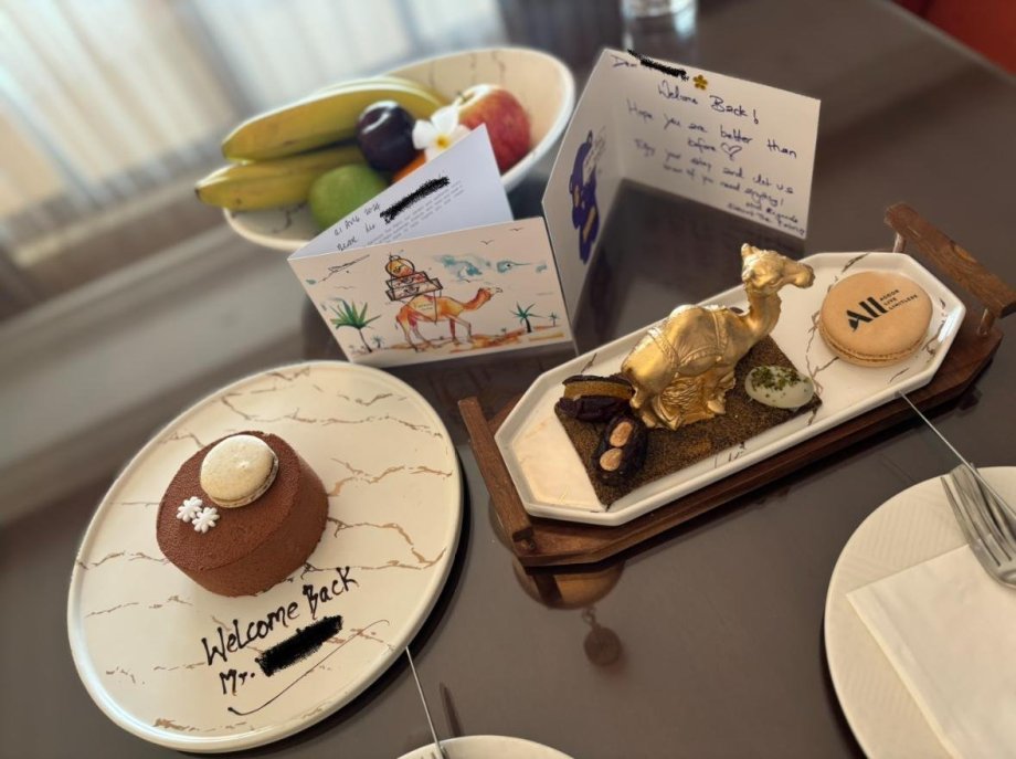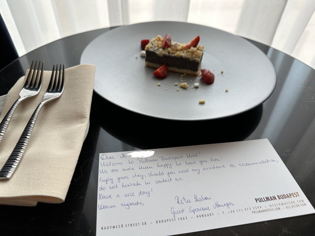 Dárek: Polopersonalizovaný dopis, makový dezert. Během check-inu mi bylo řečeno, že obdržím snídani zdarma, ale nebylo řečeno, jestli je to díky statutu nebo tím, že hotel je nově otevřený.