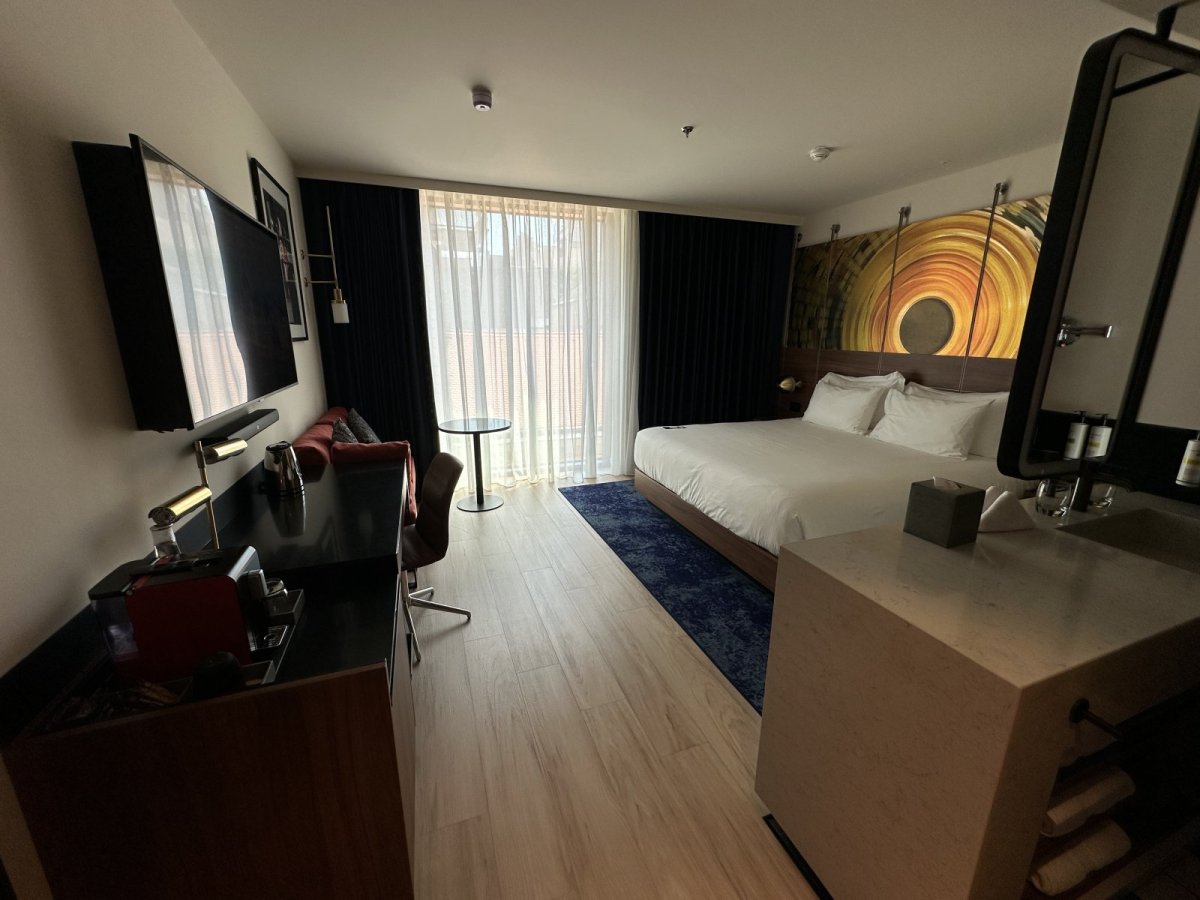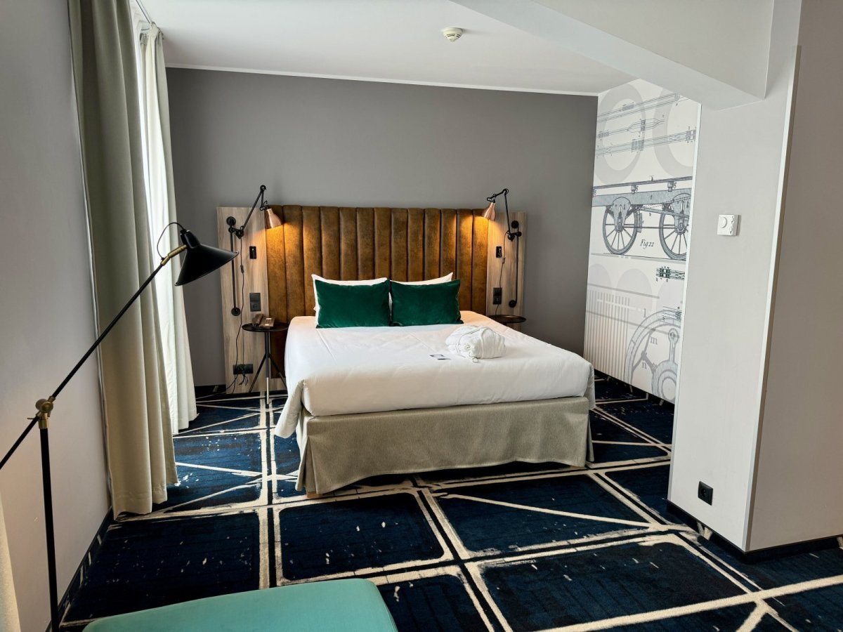 Rezervácia : 25hours bola pre mňa nová značka, ktorá patrí pod Ennismore, preto keď sa objavila letná akcia, neváhal som a spravil rezerváciu. Hotel sa nachádza v tradičnej parížskej budove priamo oproti známej vlakovej stanici Gare du Nord. Rezervovanú sme mali na 2 noci izbu Medium Plus (cena cca 155 eur/noc s raňajkami pre dvoch). Plus v tomto hoteli znamená izba s balkónom a na našu žiadosť nás upgradli o 2 úrovne vyššie do izby Large Plus. S výberom izby si dali záležať, bola na najvyššom poschodí a mala krásny výhľad na baziliku Sacré-Cœur a časť stanice. Balkón bol dostatočne veľký, mal menšie posedenie so stolíkom a dvomi stoličkami, z ktorých ste mohli pozorovať okolitý život. Dobrý výhľad na Sacré-Cœur bol aj priamo z postele.