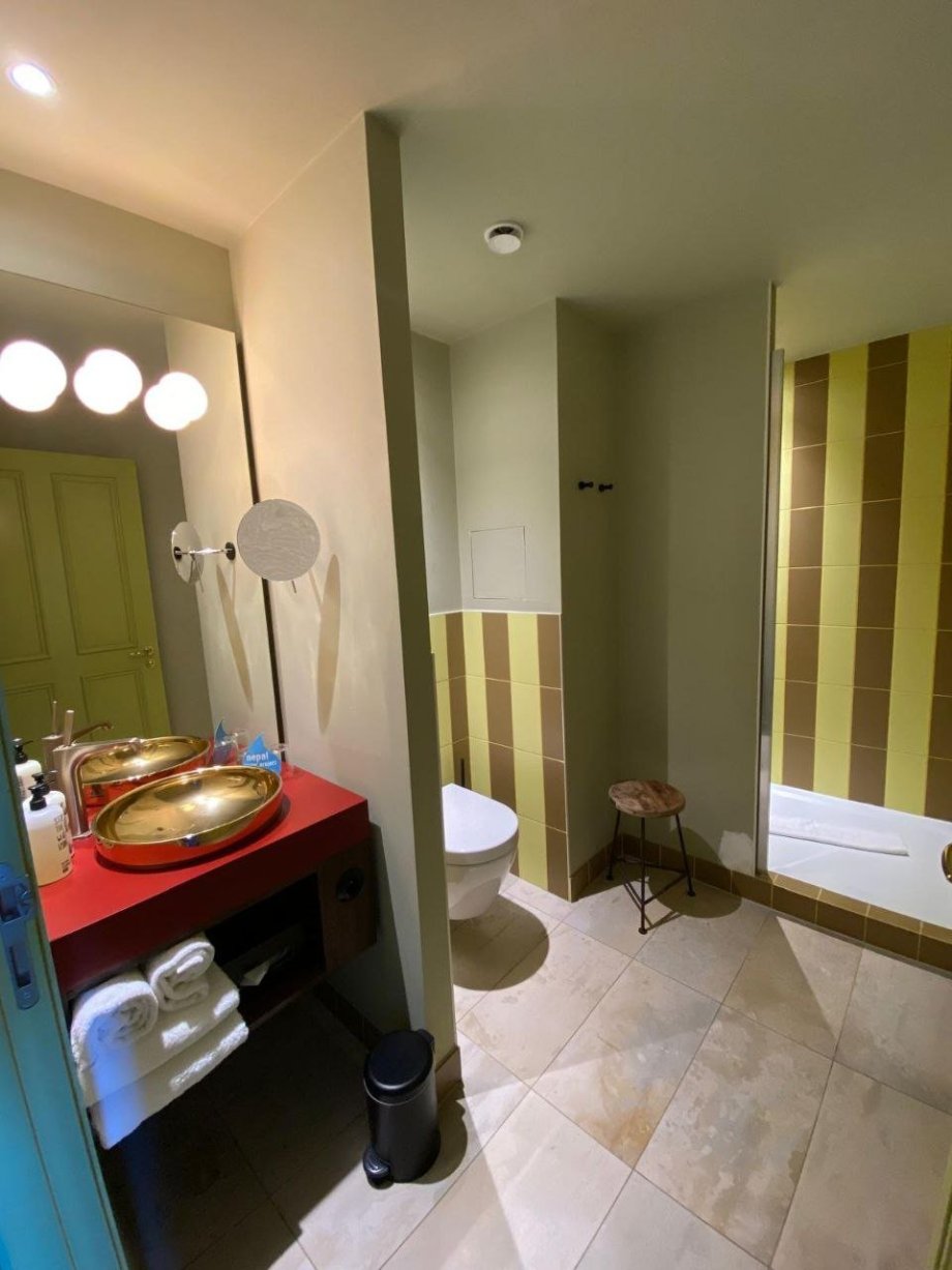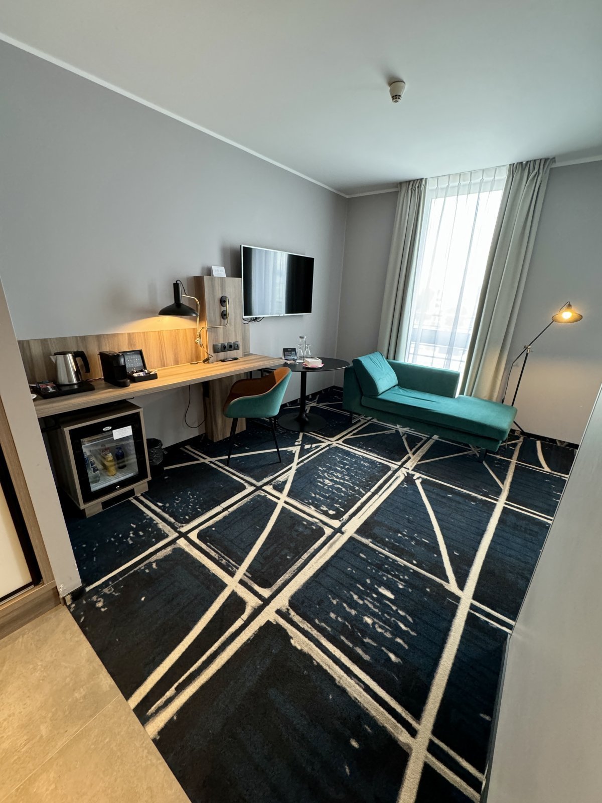Samotná izba L bola dostatočne veľká a na rozdiel od mnohých iných sterilných Accorov obsahovala množstvo dizajnových prvkov. Celkovo budila dojem, ako keby ste domov k rodičom do detskej izby. Ak sa nemýlim, minibar bol v cene. Kozmetika v kúpeľni bola takisto veľmi dobrá, konkrétne nemecká značka „Stop the water while using me!“ naposledy som ju videl aj v sieti MotelOne v Norimbergu a mne osobne sa páči. Izba bola pre nás nachystaná už niečo po 8. ráno a problém nebol ani s neskorým odchodom po 16:00.