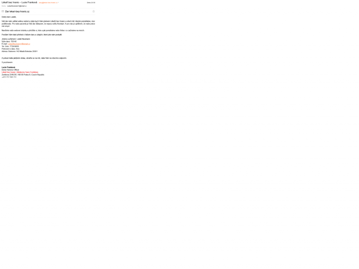 Nebo ještě jinak, kdo sem (nebo do zprávy) první nahraje potvrzení o daru pro Lékaře bez hranic nebo podobnou charitu, tomu kód pošlu. Minimální vyšší daru stanovuji na 5% z ceny rezervace.
