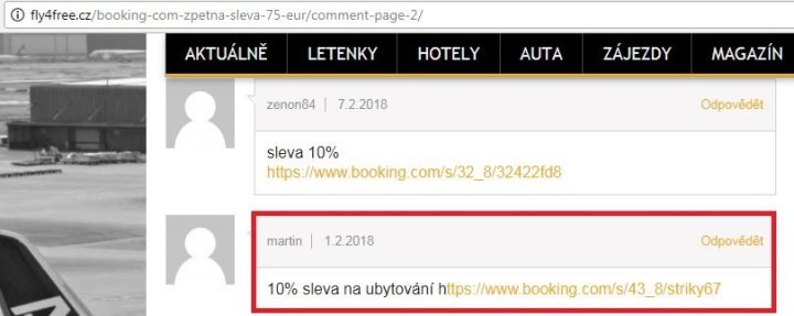Ale skoro bych řekl, že je to fake FB account ;) pravděpodobně založenej 20/2 a spamující všude ten booking kod :D