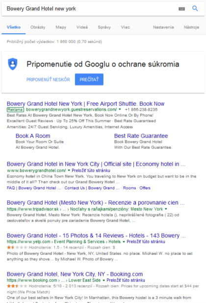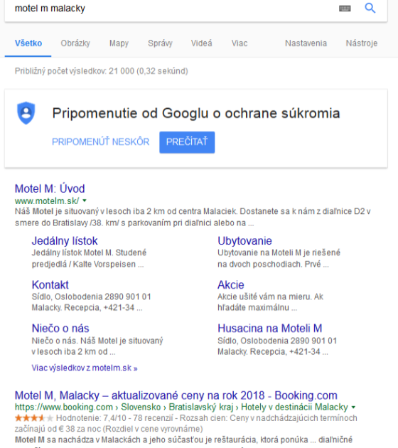 Viem, že Ťa nahnevali, ale to nie je dôvod na zavádzanie. Odkaz v googli na booking.com je jasne vyznačený ako reklama. Domovské stránky hotel pri zadaní názvu mesta a hotelu sa zjavujú na predných miestach.