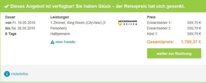 Ďakujem pekne za radu, idem sa na to pozrieť,len ten istý hotel je v júni po ramadáne a ta istá izba o 1000 EUR nižšie,no možno kvôli tomu,že je tam v júni veľmi teplo.,pred dvoma týždňami bola ta istá izba na ten náš. májový termín za 2300 € na 8 dni a dnes je ta cena 3390€,podľa mna je to riadne zvýšenie, takisto aj iné hotely,ktoré mám vybraté, za 2 týždne iba zvýšili,ani jeden neznížil. Preto sa neviem rozhodnúť či mám to teraz kupit aj keď za takú cenu alebo sa môže v apríli stať, že budú ceny na máj výhodnejšie, ako last minute☺️