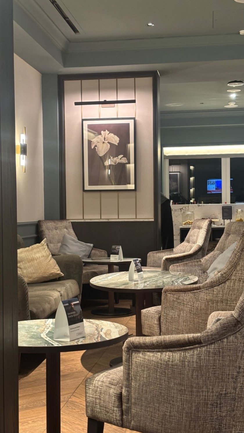 Hned píšu, že není na LK gratis. Doplatek je 15£ a stojí to za to! Je tu klid, usadí vás ke stolu. Jídlo A la carte (jsou to malá jídla, nebo toasty, ale celkem chutná). Míchané nápoje na baru, případně ke stolu z nápojového lístku. Bohužel zde nejsou sprchy, jinak vše super a na úrovni. Neskutečný relax.