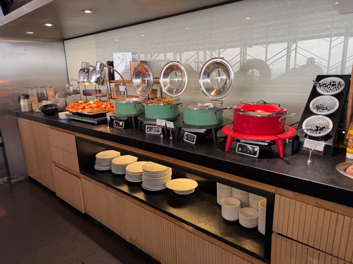 opětovná návštěva, tentokrát v ranních hodinách (7.45 - 10.00), lounge byl naplněn tak z 20%. snídaňové menu - vajíčka ve formě mini muffinů, anglická, studená kuchyně, atd... za mně úplně v pohodě, výborné sladké pečivo, cca 4 druhy slušného vína, jedno šumivé, nealko a pivo v plechu... určitě bych šel znovu.. krásná terasa s výhledem na plochu, ke gatům asi půl minuty.. při odchodu jsem se zeptal jestli si můžu vzít plechovku Kinnie a s úsměvem odpověď, že samozřejmě... jediné mínus - jen jeden záchod ...