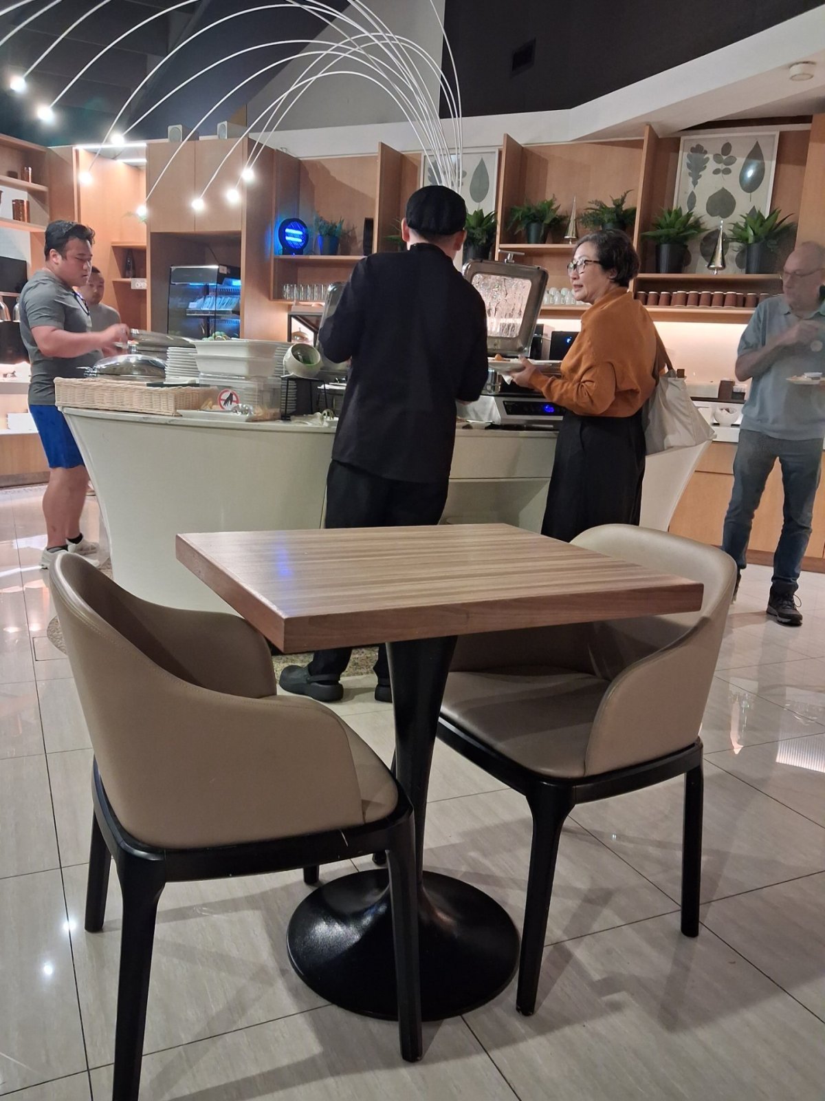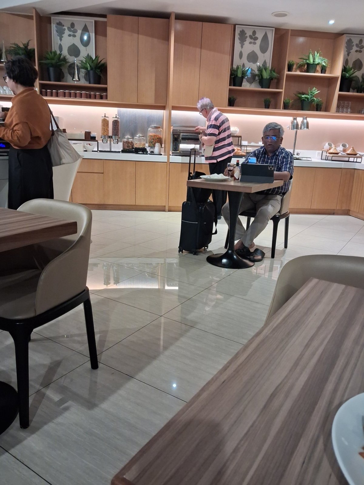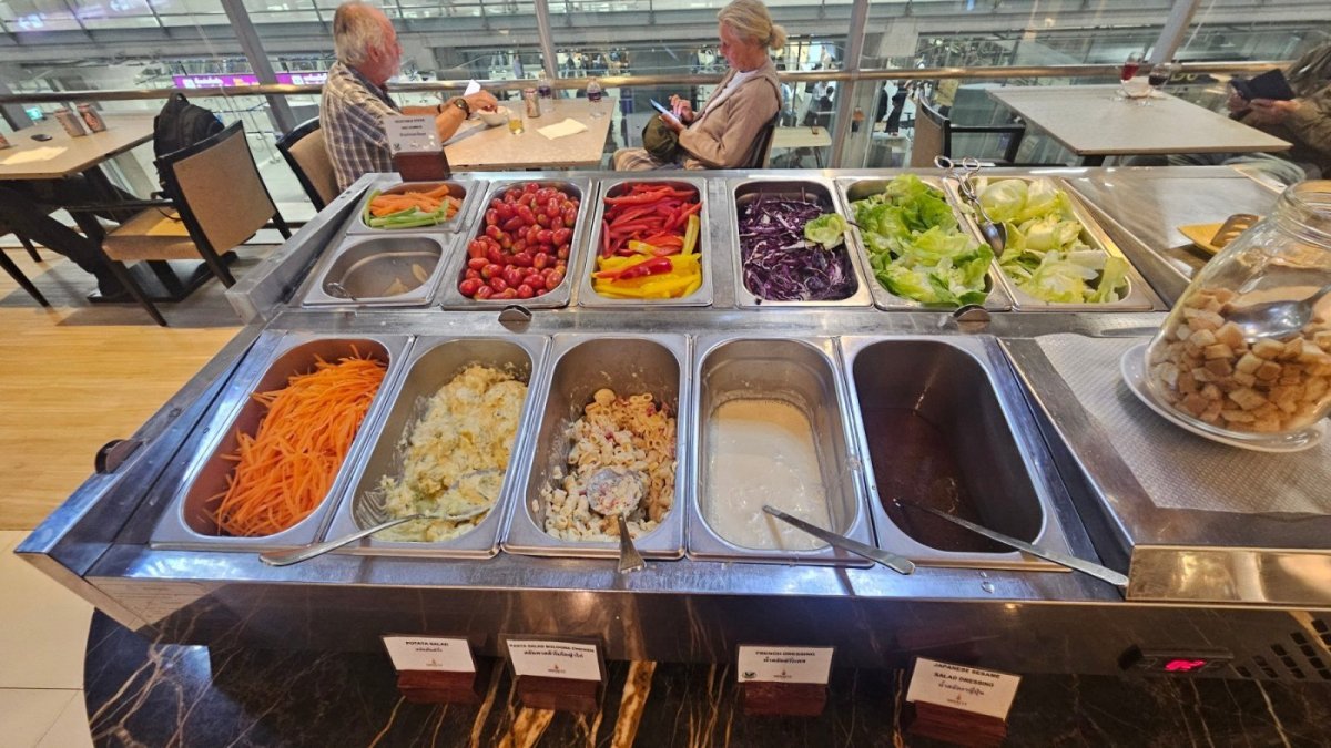 Předvčírem navštíven salonek Ambassador Transit v SIN, naprosto skvělé. Mnoho druhů teplých jídel, během mého dvouhodinového pobytu několikrát doplněno a obměněno. Koutek Live cooking, kde kuchař před vámi dělá různé těstoviny a podobně. Pro kuřáky je dokonce na přilehlé terase kuřárna s pohodlnými sedačkami a výhledem na letištní plochu.