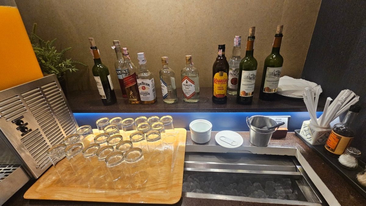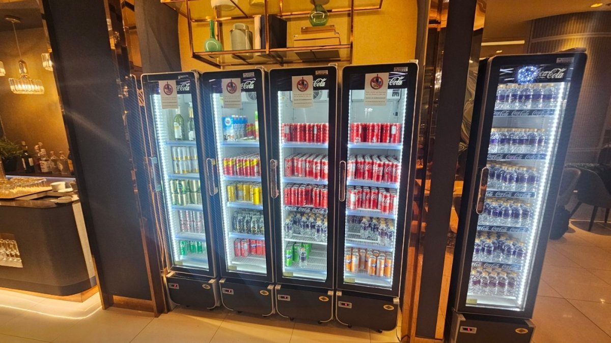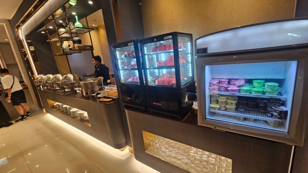 Velky salonek s pomerne sirokou nabidkou teplych jidel asijskeho stylu, salatu, dezertu, zmrzlin a dalsi kuchyne. Celkem vyber nealka a piva, omezenejsi vyber tvrdeho alkoholu.