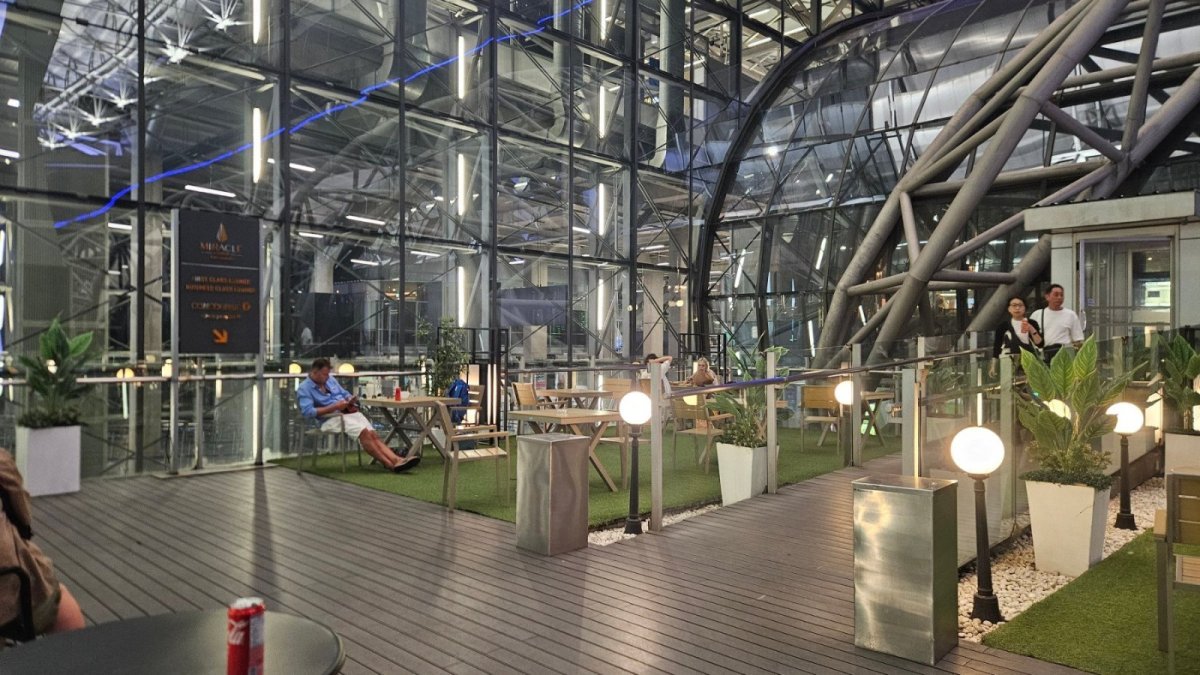 Asi jedine misto na letisti BKK za security, kde je legalni misto na koureni - venkovni terasa.