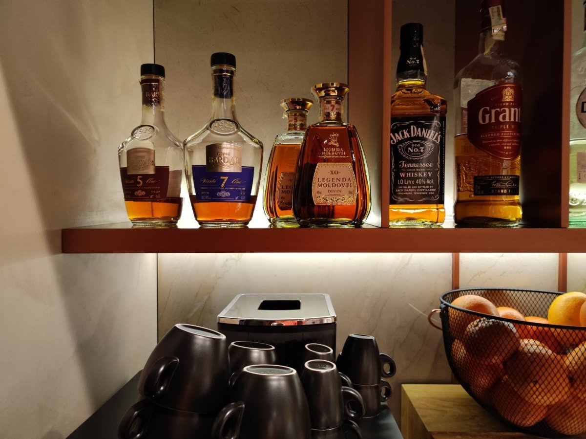 Již jednou jsem chválil Business Lounge v KIV, teď mně, co do nabídky hlavně chlastu, připadal ještě vymazlenější a v poměru velikost lounge/rozmanitost pití je absolutní TOP. Kromě běžného mezinárodního pití třeba 6 druhů místního Lumen Craft piva, 3 druhy sektu Cricova, 5 druhů divin (koňaku/brandy) a skvělá nabídka bílých a červených vín, kde bylo mj. Rosu de Purcari 2018. Jako tady bych si dovedl představit veselé odpoledne;-)