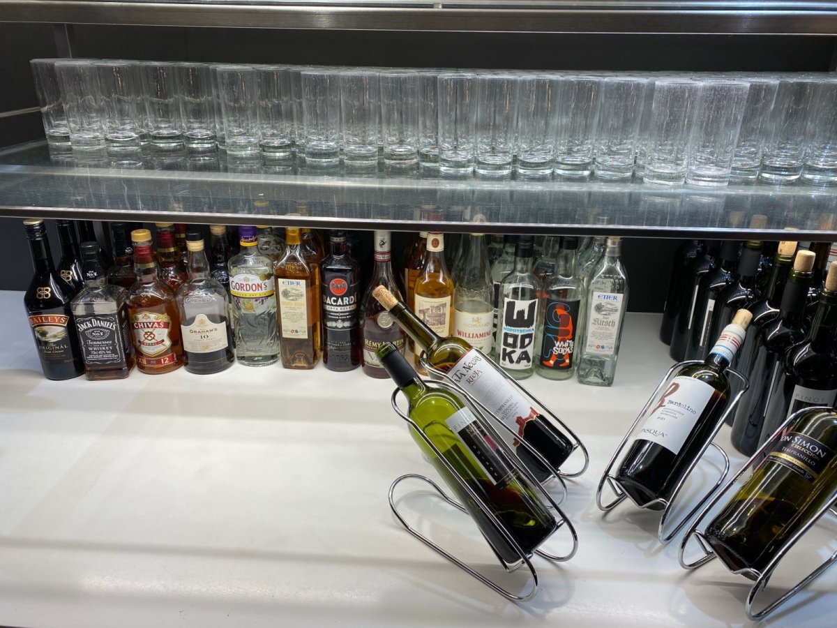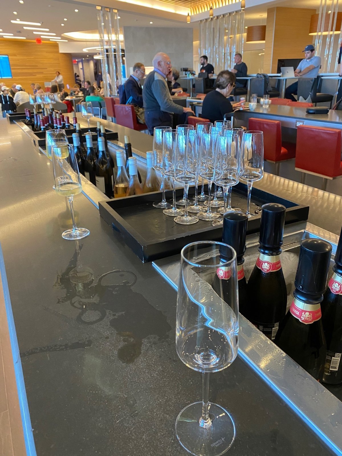 Salónek umožňuje bezplatný vstup i držitelům české Mastercard World Elite. V nabídce teplá jídla v malých mističkách, dezerty, saláty, tři druhy čerstvých džusů (kešu, grep, mango), káva, nealko v plechovkách, asi tři druhy plechovkového piva a kolem 10 druhů vín na půl s obsluhou. Tvrdý alkohol jsem neviděl. Ta oplastovaná jablka byla celkem slušný covidový hardcore.