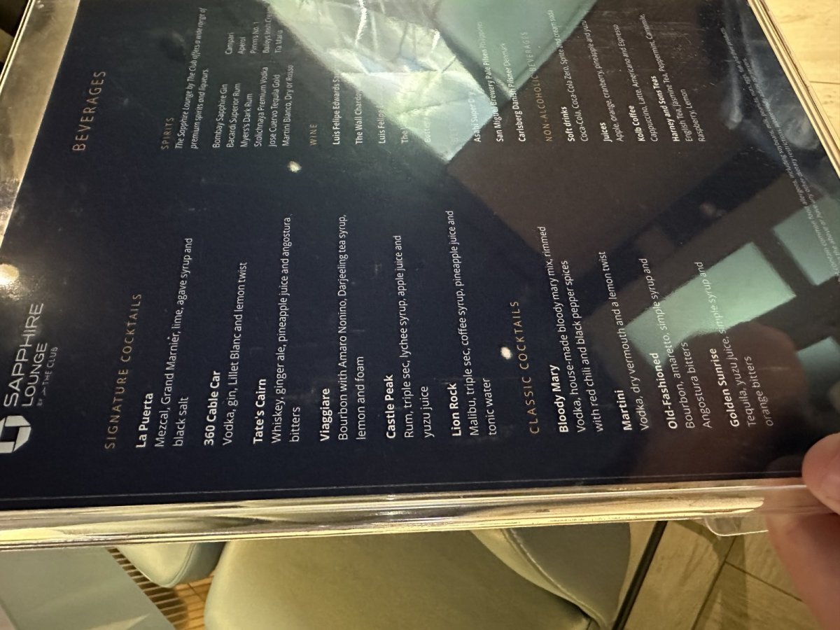 asi nejlepší OW Sapphire lounge, kterou jsem navštívil - dva druhy šampaňského, jídlo na objednávku (vč. fantastických dim sum, polévek apod.)