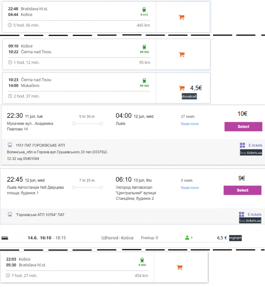 (Bratislava) - Košice - Mukačevovo - Lviv - Užhorod - Košice - (Bratislava) = 30€