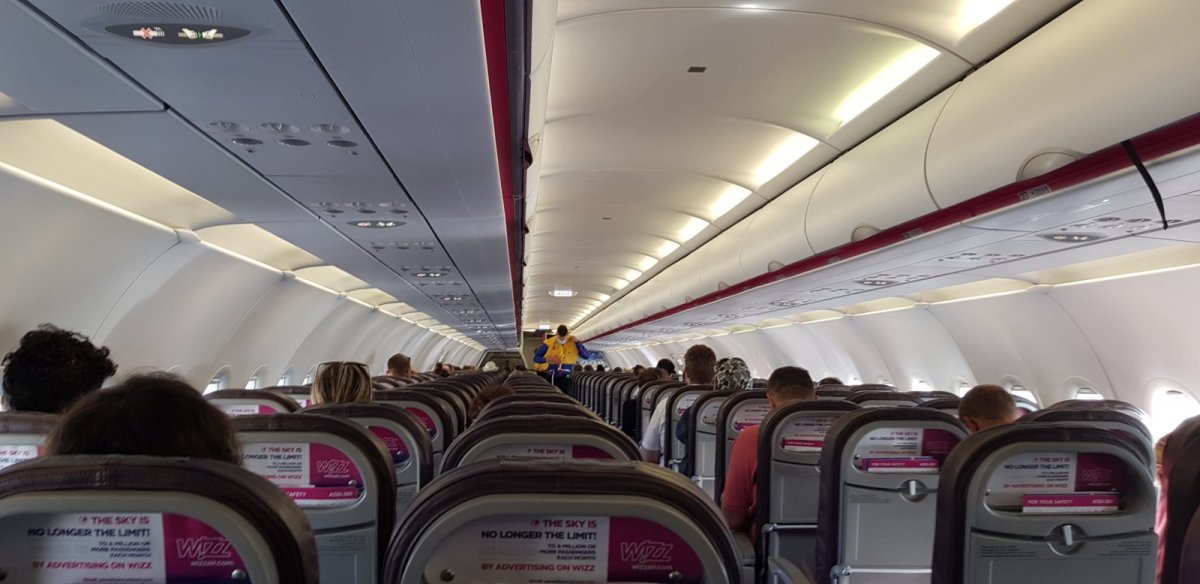 Let zpátky taky slušně zaplněný, ve Vídni nikdo nic nechtěl (ale tranzitní formulář nám poslal Wizz, že musíme mít vyplněný).