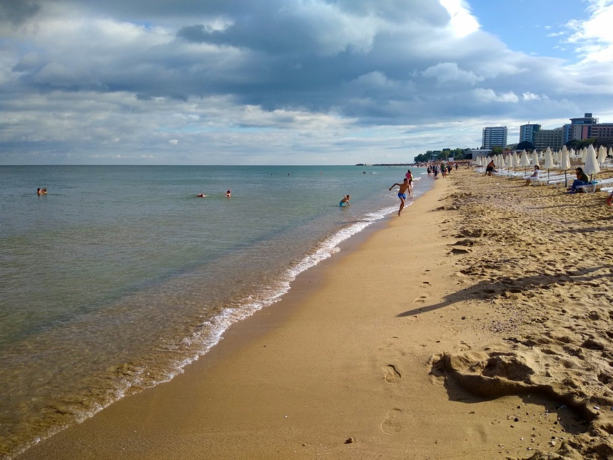 Pláž jsme navštivili hlavní na Zlatých pískách v pátek odpoledne, kde bylo relativně volno (dopoledne ale dost pršelo); v sobotu a v neděli dopoledne jsme byli na "schovanější" pláži Čajka. V sobotu i v neděli vlny ano, ale ne tak, aby komplikovaly život - plavat se dalo. Moře vzhledem k písečným plážím překvapivě průzračné. Pláže na náš vkus vcelku volné - viz foto. Na místě bylo nejvíc Rumunů, pak Poláků a Bulhárů a několik Rusů. Čechů minimum. Na Zlatých pískách relativně draho - kopeček zmrzliny 3 LV; jídlo na ulici od 8 do 12 LV; cheesburger v McD 3,3 LV; 2 litry vody nebo 500 ml limonády v brandovaném supermarketu 2 LV.