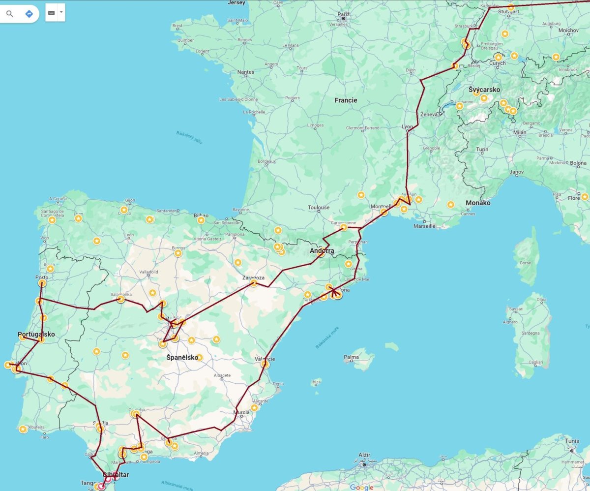 HLEDÁME seriózní zájemce/zájemkyni. Celkem 24 dní (Colmar, Avignon + okolí Provance, Barcelona, Valencie, Granada, Cordoba, Sevilla + dalších 6 míst v Andalusii, Gibraltar, Tanger, Lisabon, Porto, Salamanca, Segovia, Madrid a okolí vč. Toledo, zpět přes Andorra (knížectví Andorra nemá DPH a SPD tak může být zajímavý nákup cestou zpět také návštěva Carcassonne).