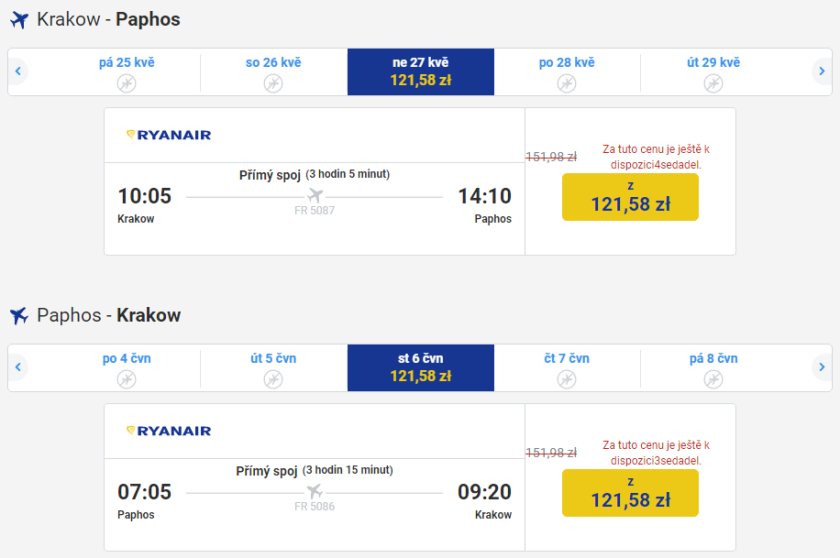 Krakov - Pafos 243,16 zł / 1.470 Kč