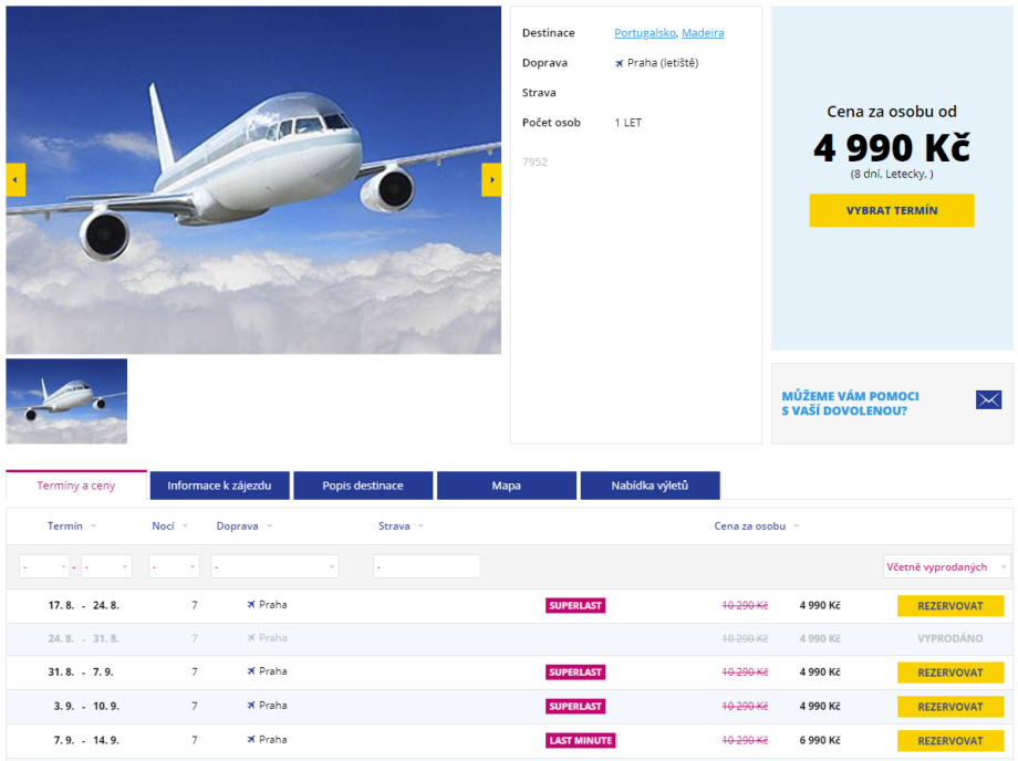 Pár termínů na přímých letech z Prahy na Madeiru u CK Čedok. 17.8.-24.8. už je jen jedna letenka.