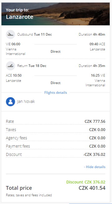 - [OE] Vídeň - Lanzarote 15,5 € / 402 Kč RT