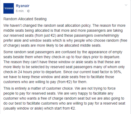 guessWho napsal(a):Nó jo. Takže "Nic jsme nezměnili. bla... bla... Ale nyní blokujeme window a aisle lidem co si připlatí. Ale nic jsme nezměnili"Vyjadrenie k prideľovaniu miest.