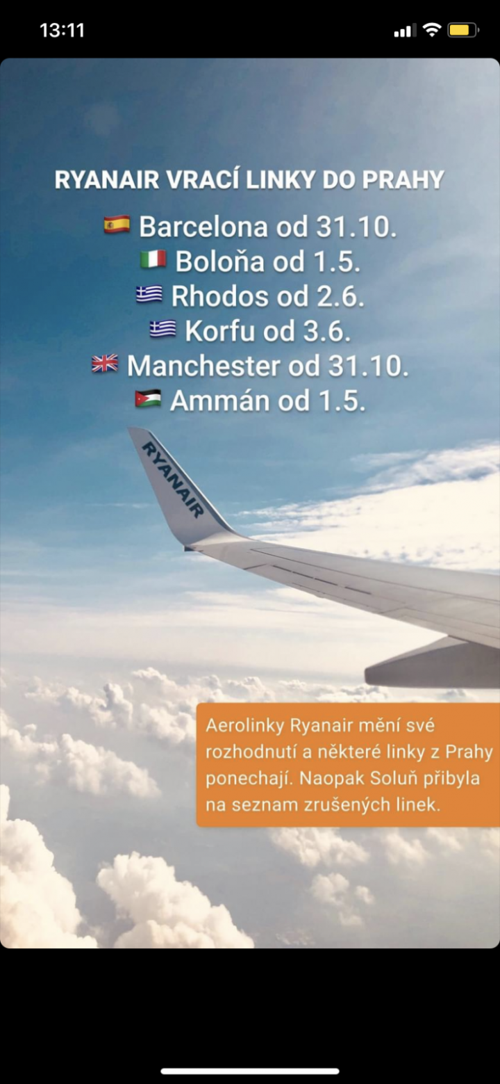 Kolegův syn je pilot u Ryanairu. Letů má naprosté minimum, naposledy letěl před měsícem. Zaměstnancům chodí občas jakýsi zpravodaj. V tom poslední jim mj. píšou, že v zimě bude letů minimum, v letním letovém řádu logicky počítají s větším provozem. Ale bude se to hodně řídit aktuální situací. Takže zrušení prakticky všech destinací z Prahy nemusí nutně znamenat, že do/z nich opravdu nic nebude lítat. Znamená to, že se všechno bude dolaďovat/měnit průběžně podle situace. Což už se nakonec v letecké dopravě děje skoro rok, takže žádná novinka...
