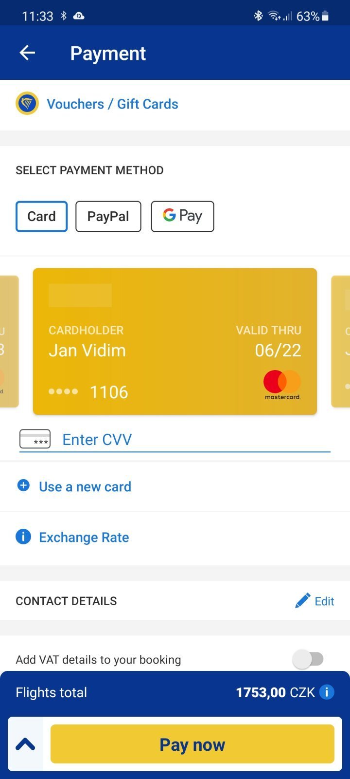 Nevim presne jak to ted je ale me to nabidlo platbu v Eurech nebo platbu v CZK Zkusil jsem zvolit CZK , nevim uz presne kolik tam bylo v tech Eurech.....ale urcite to nebylo jako ten prvni let tedy 12.99 , ale vic ,prepocitavali tech 359 Kc na Eura