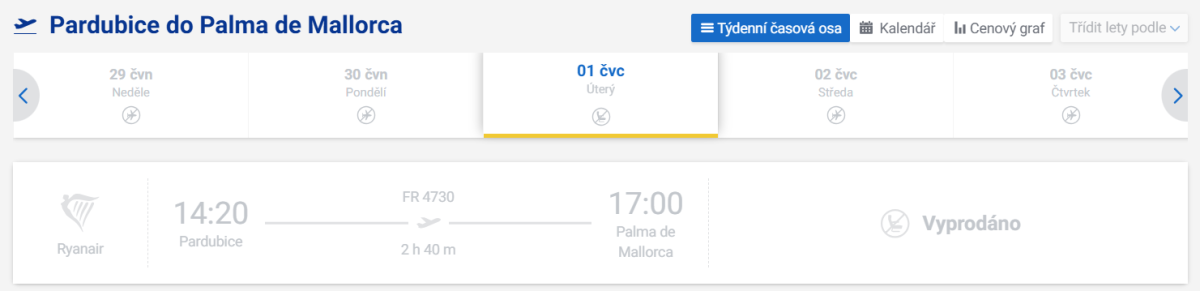 Pardubice-Palma de Mallorca 3.6.2025-25.10.2025 úterý PMI(11:10)-PED(13:55) PED(14:20)-PMI(17:00) sobota PMI(5:45)-PED(8:30) PED(8:55)-PMI(11:35)